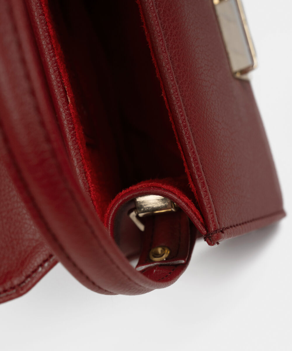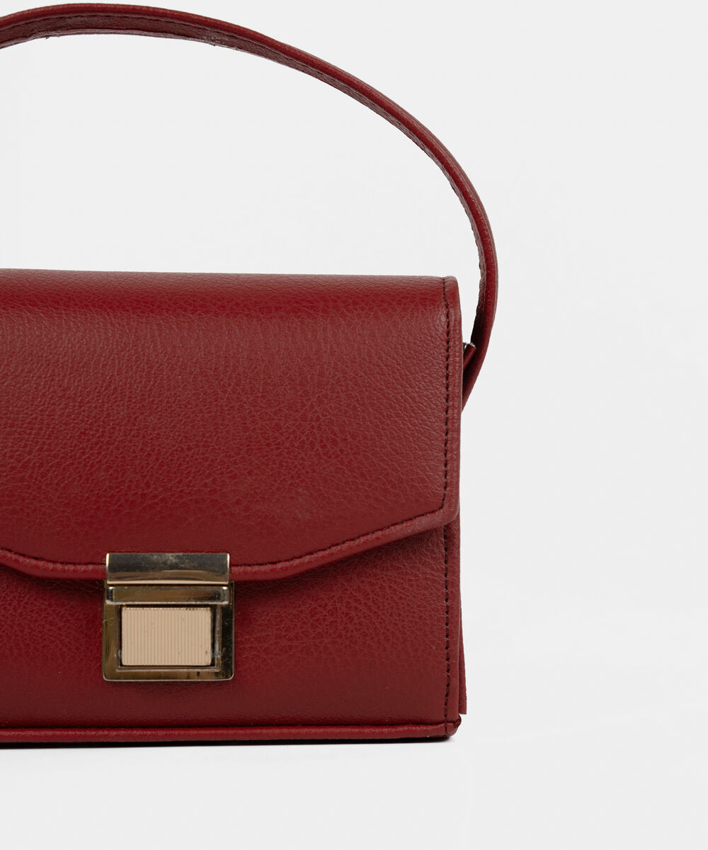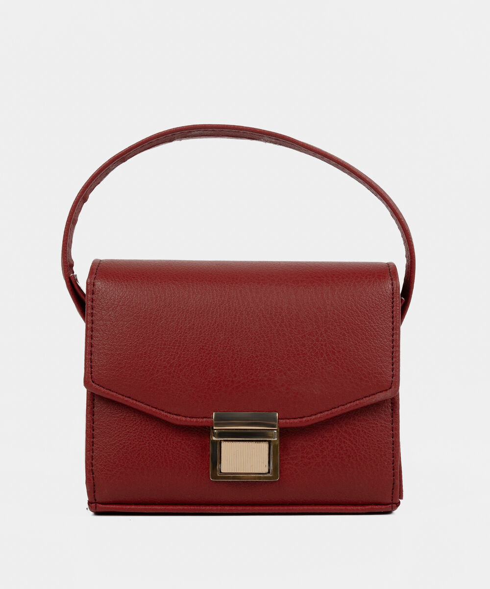 Perfect your style with our stylish maroon mini top-handle bag featuring a tuck-lock flap closure for a secure finish.