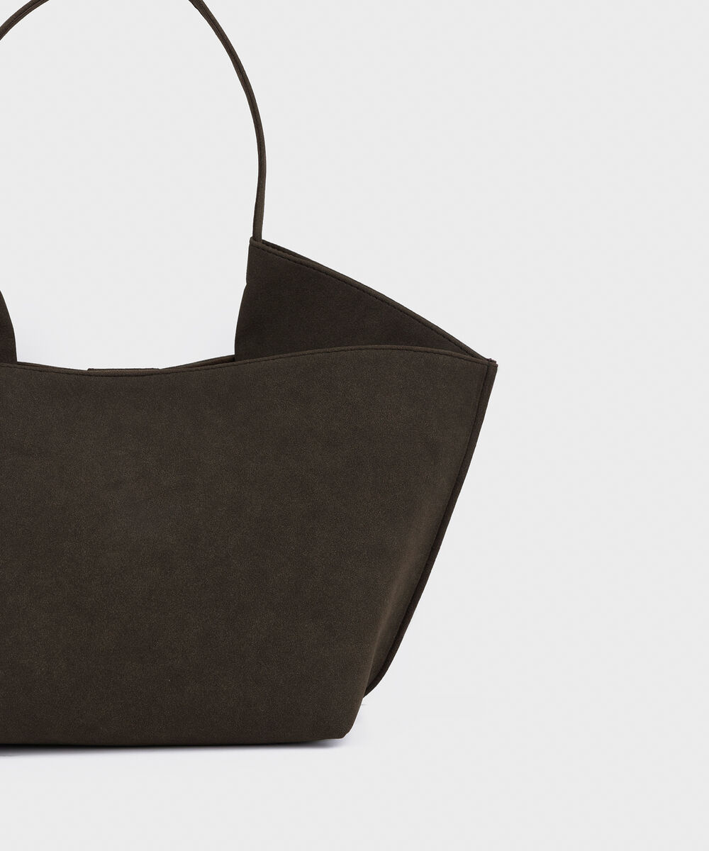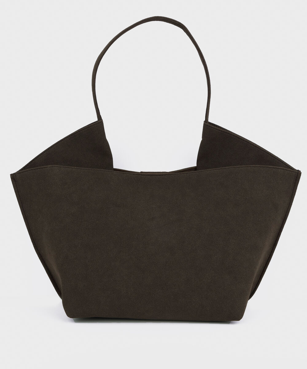 Refresh your style with our brown tote bag with inverted side gazettes and a magnetic snap closure.