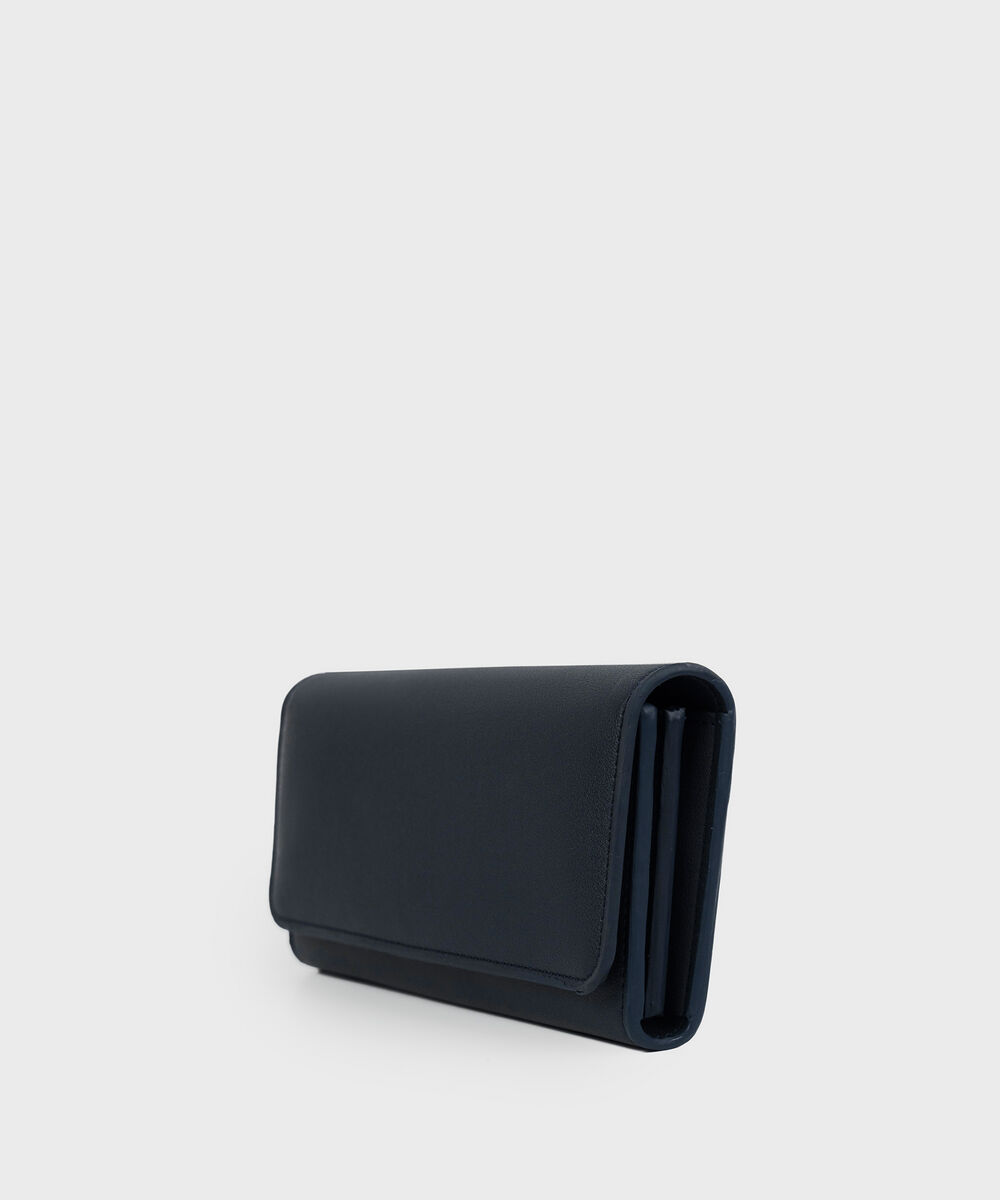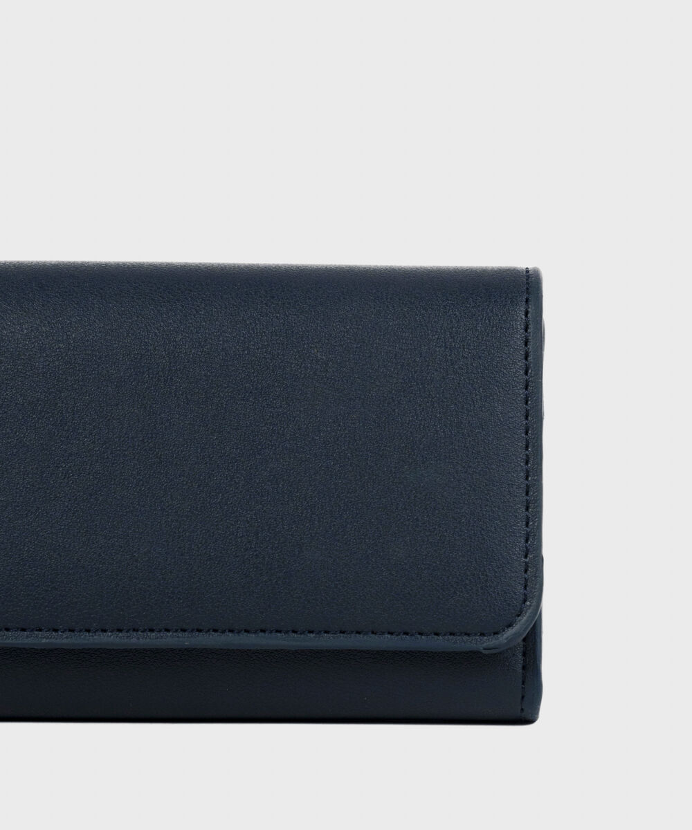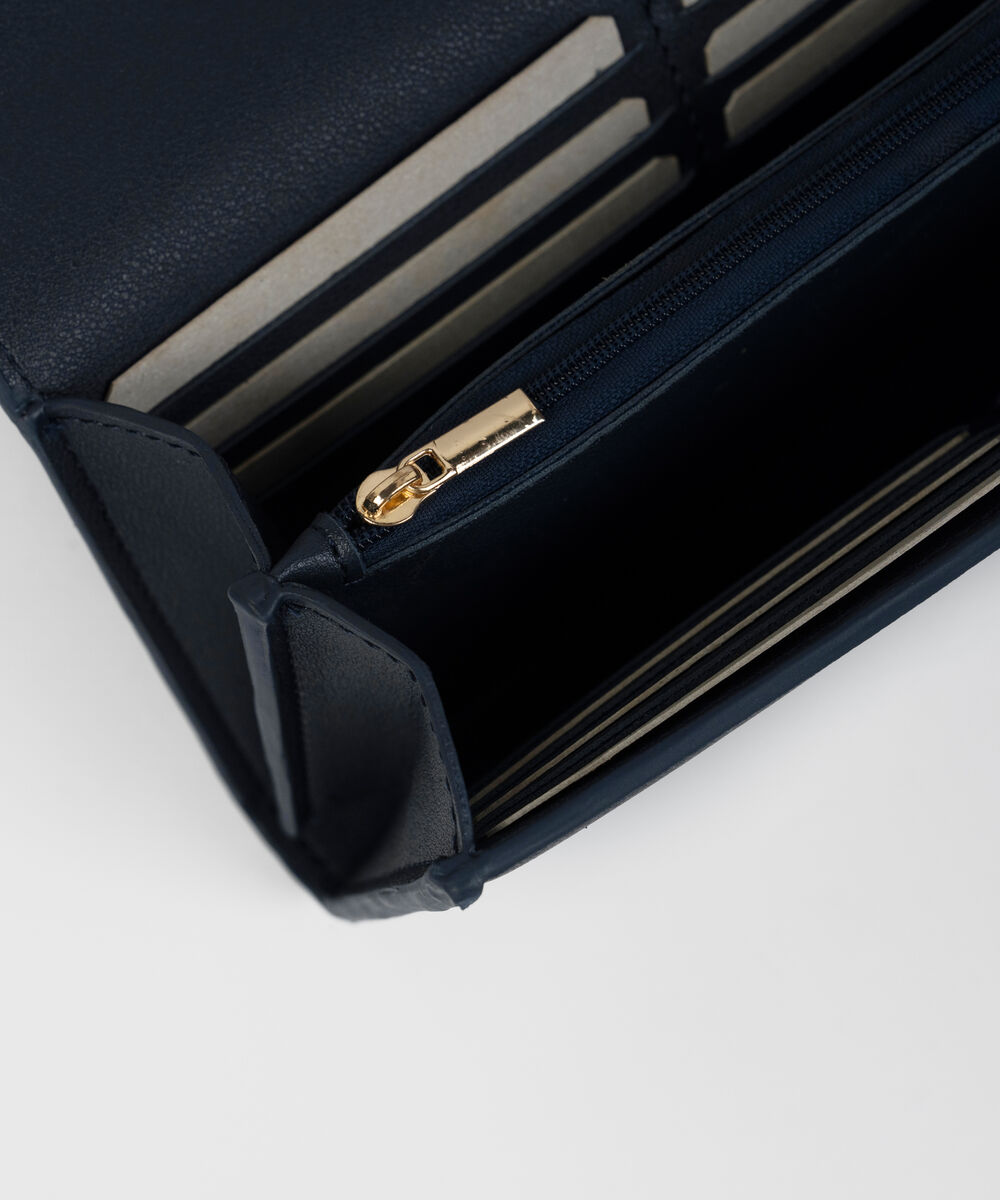 Stay organised in style with our navy blue wallet, designed with a central zip compartment and integrated card holders.