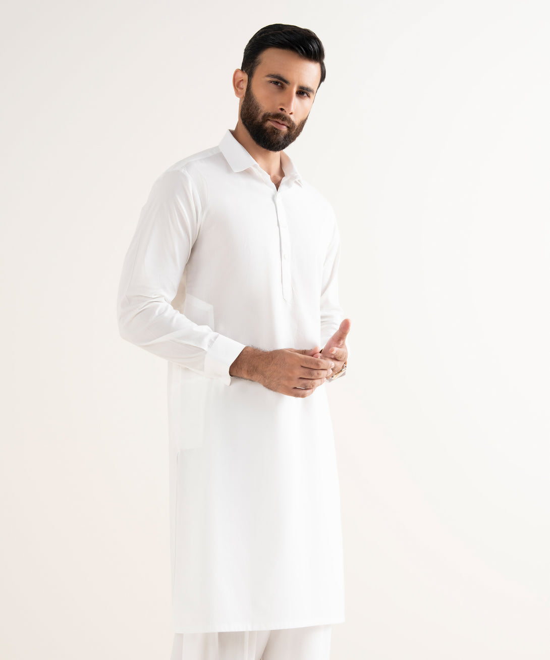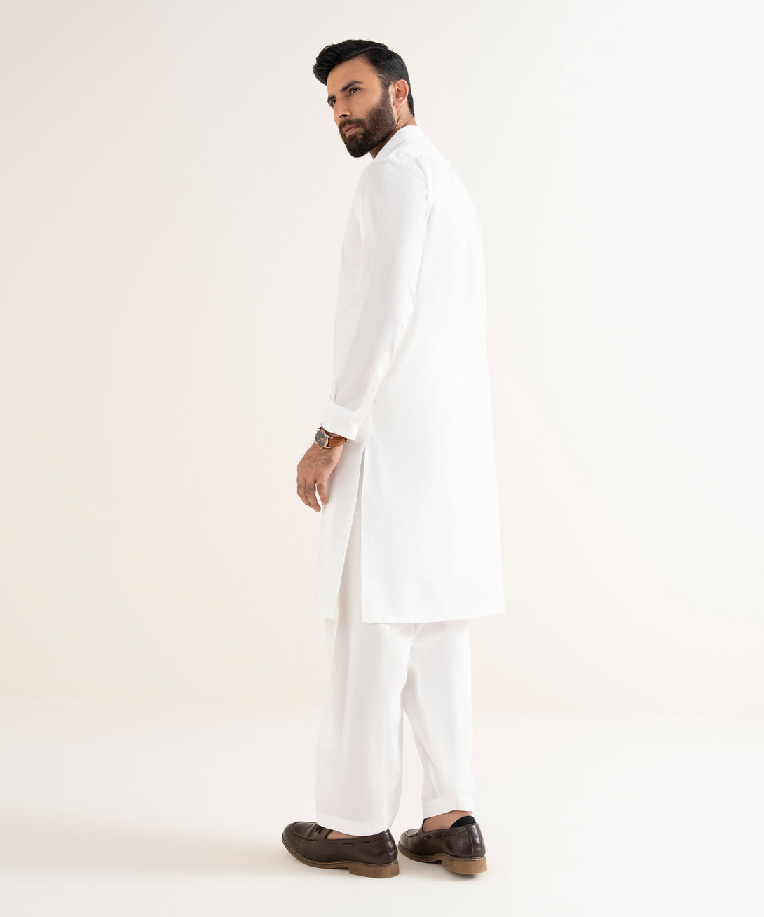 Make a statement with our white two-piece kameez and shalwar.