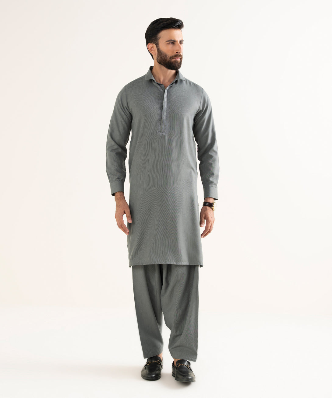 Embroidered Front Panel, Solid Plain Back, Collar Neckline, CUFF, Standard Length