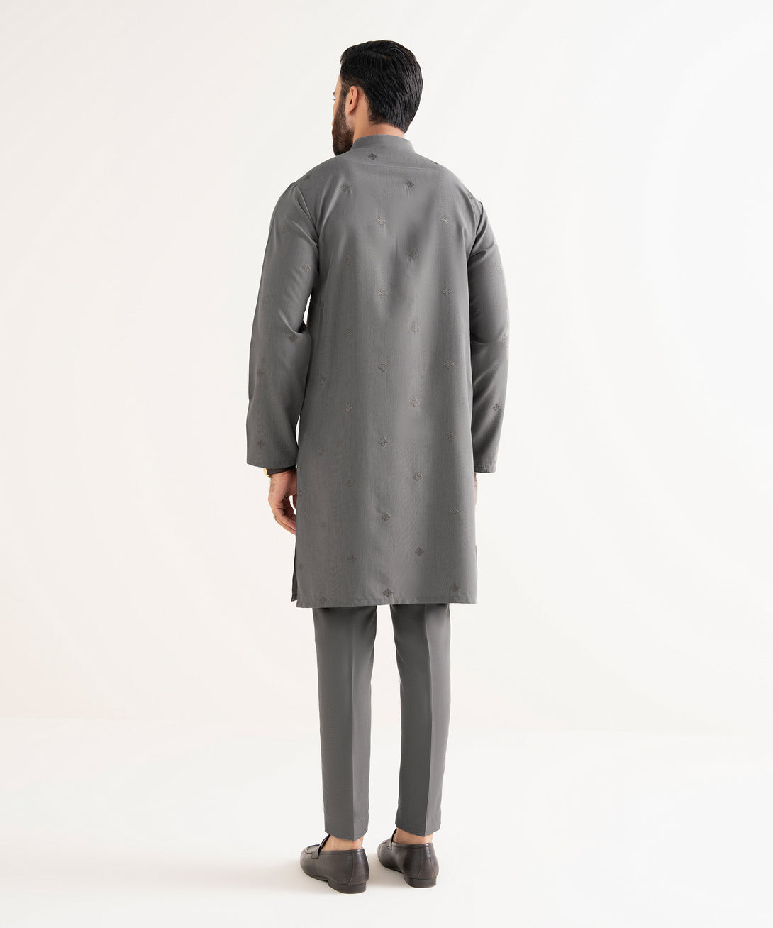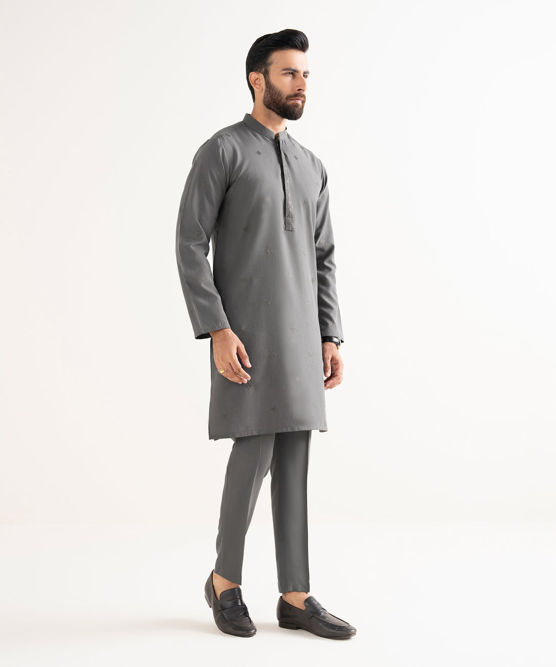 Make a dapper statement with our charcoal kurta and trousers.