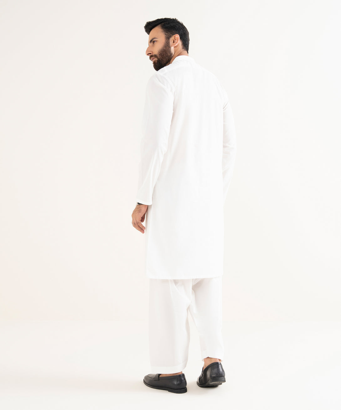 Solid Plain Front, Embroidered Back Panel, Band Neckline, OPEN, Standard Length
