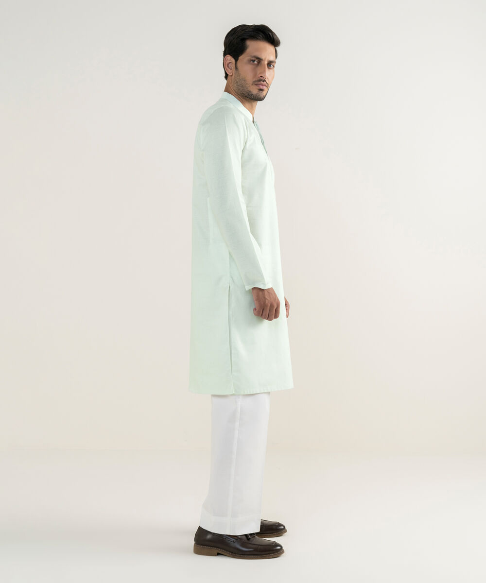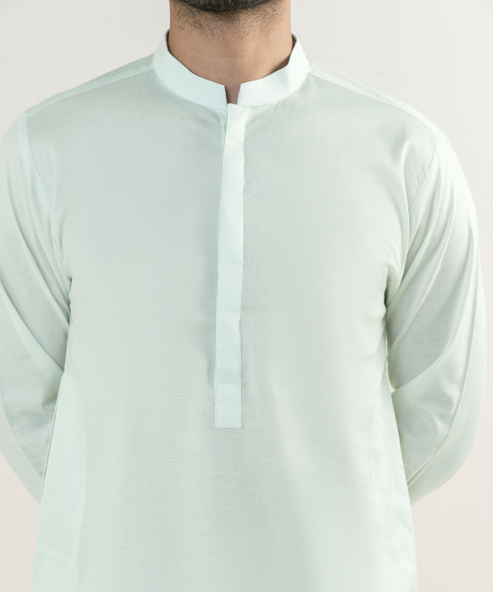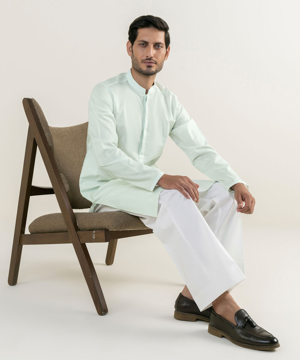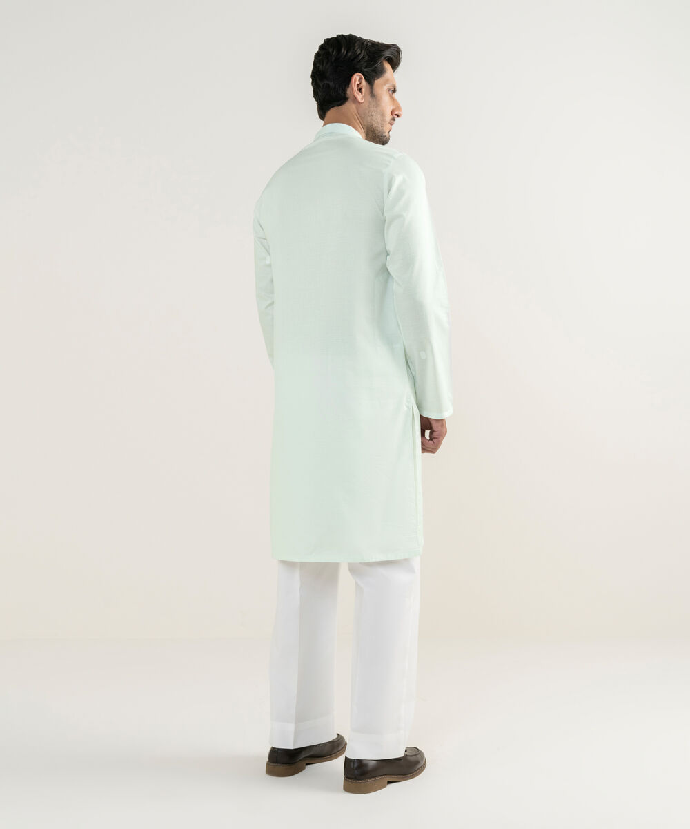 Solid Plain Front, Solid Plain Back, Band Neckline, Invisible Placket, Open SleevesColour: MintFabric: Cotton