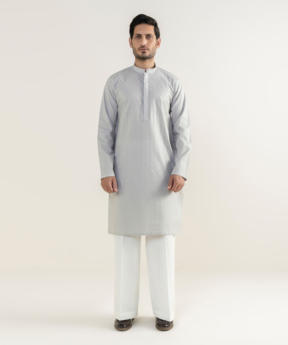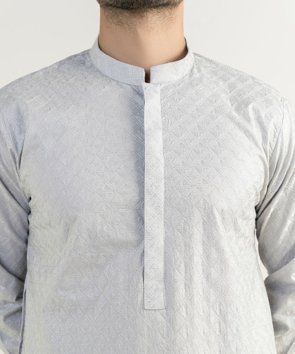 Make a dapper statement with our grey embroidered kurta.