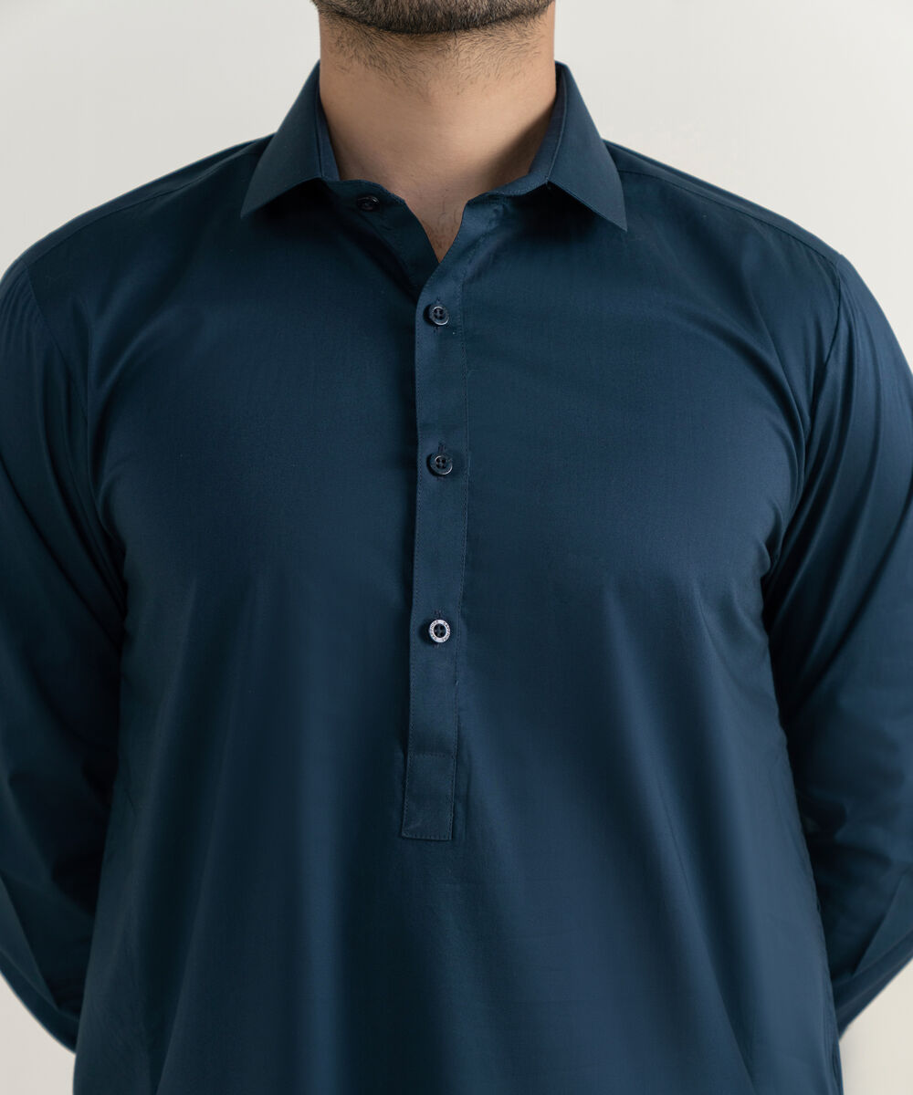 Solid Plain Front, Solid Plain Back, Collar Neckline, Standard Placket, Cuff SleevesColour: NavyFabric: Cotton