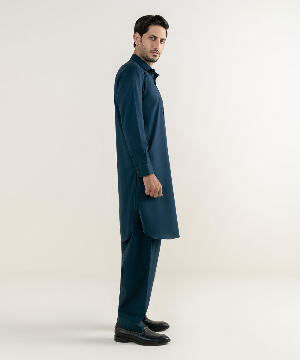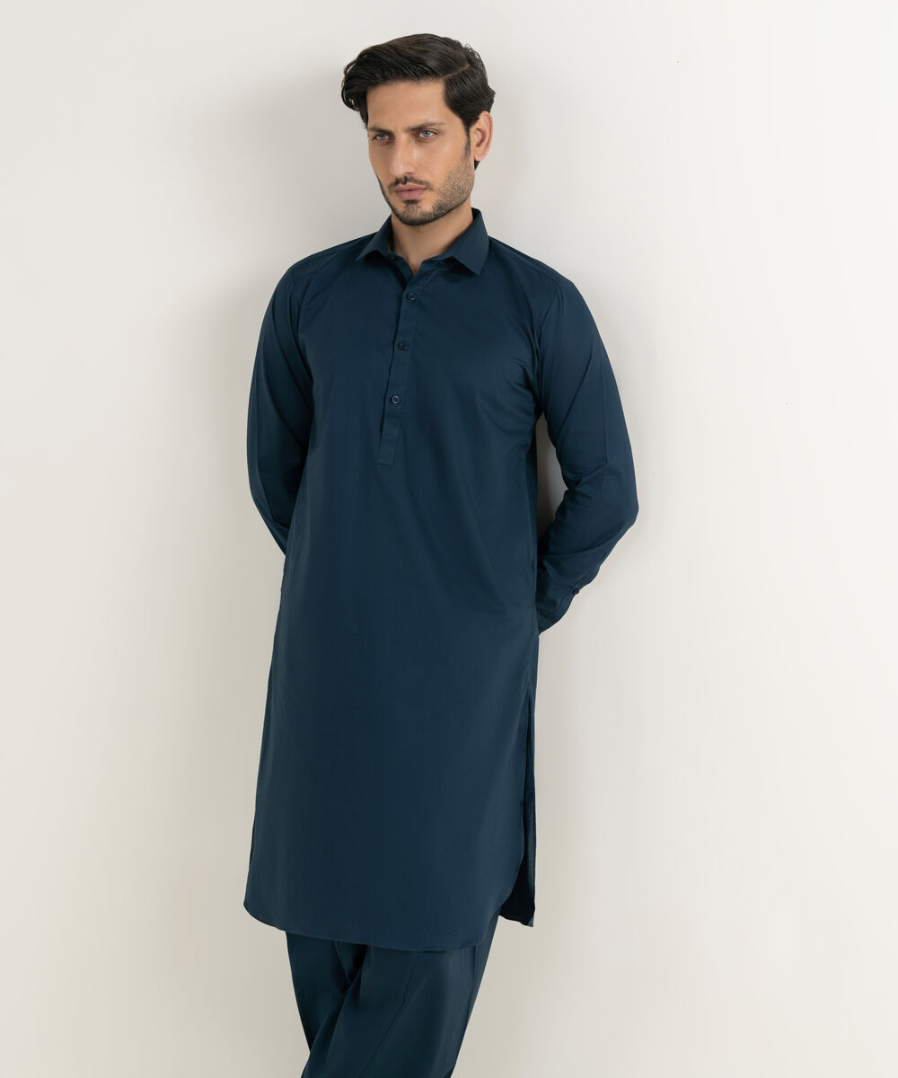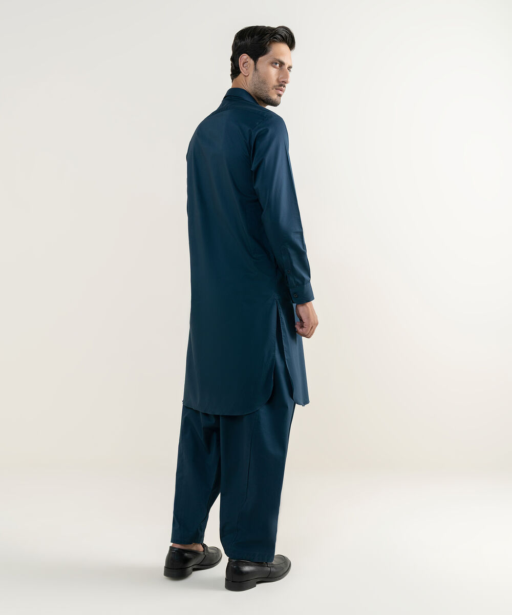 Make a lasting impression with our dyed two-piece navy shalwar kameez.