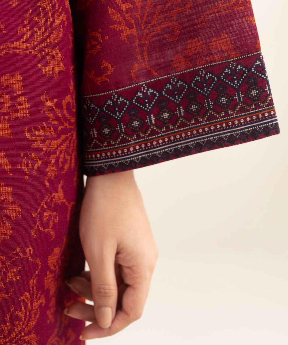 ShirtPrinted Khaddar Shirt 3mFabric: KhaddarColour: Maroon & Burnt Orange