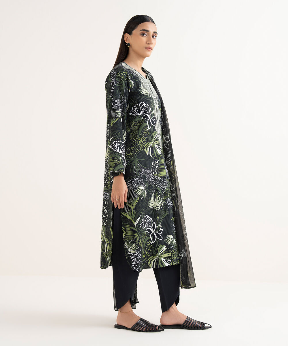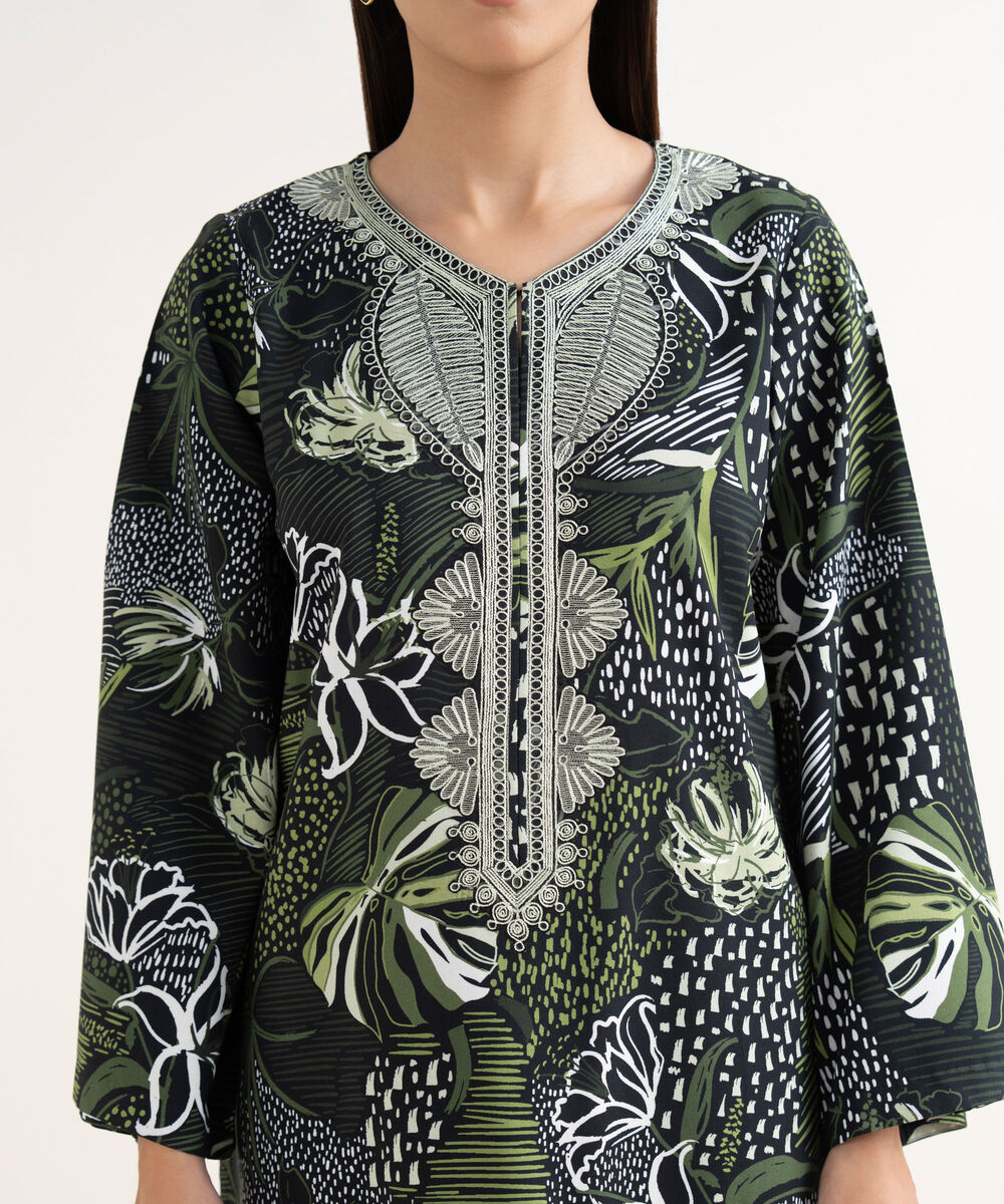ShirtPrinted Lawn Shirt 3mEmbroidered Neckline 1pcFabric: LawnColour: Black