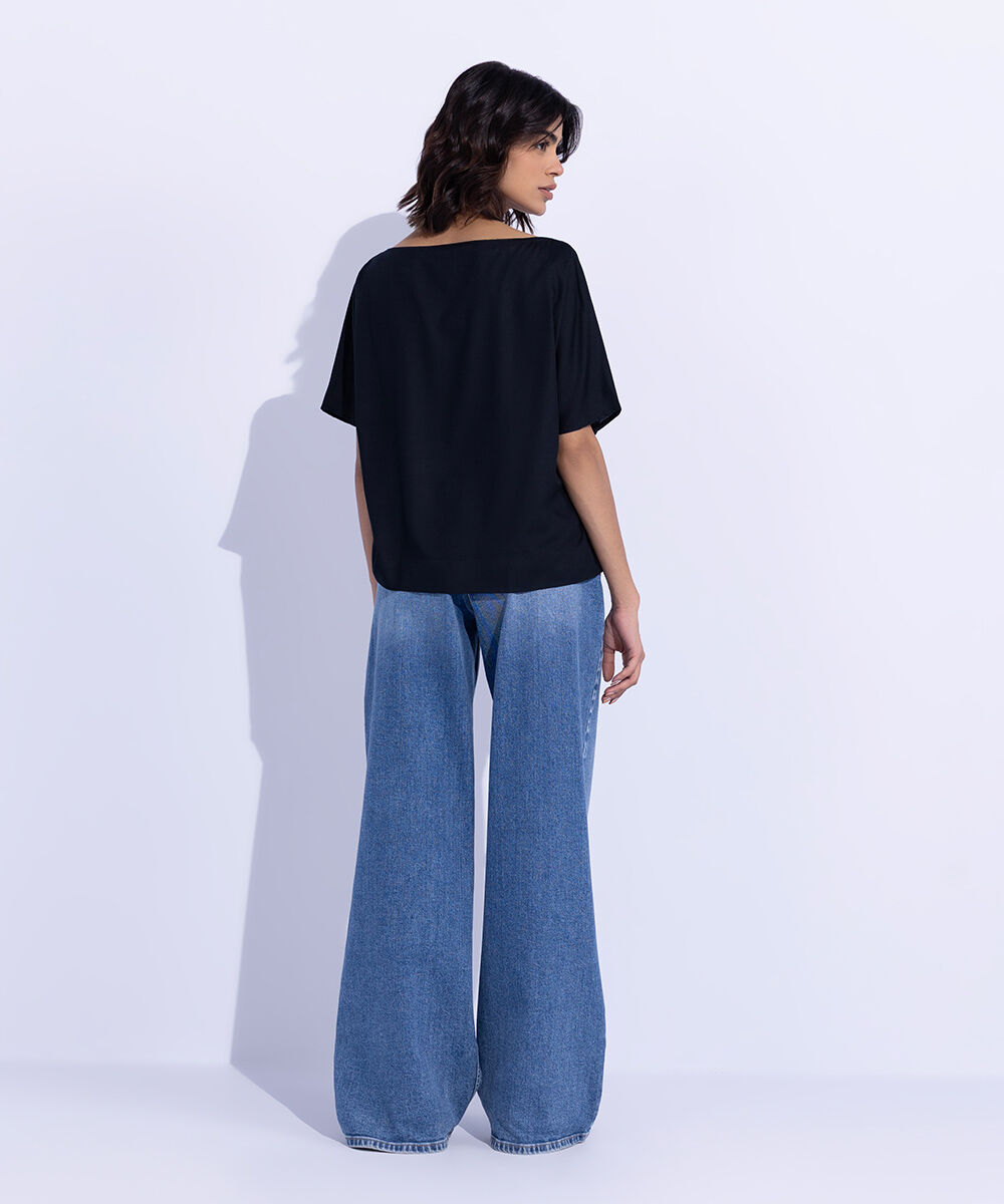 Slash neck top in soft drapey fabric. Slash neck with short kimono sleeves.