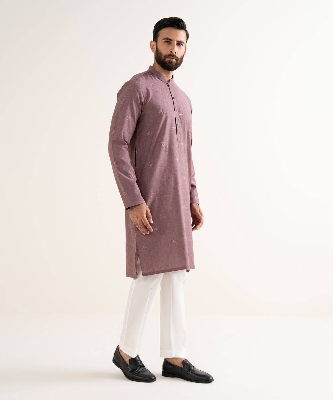 Embroidered Front Panel, Embroidered Back Panel, Band Neckline, Open Sleeves, Standard Length