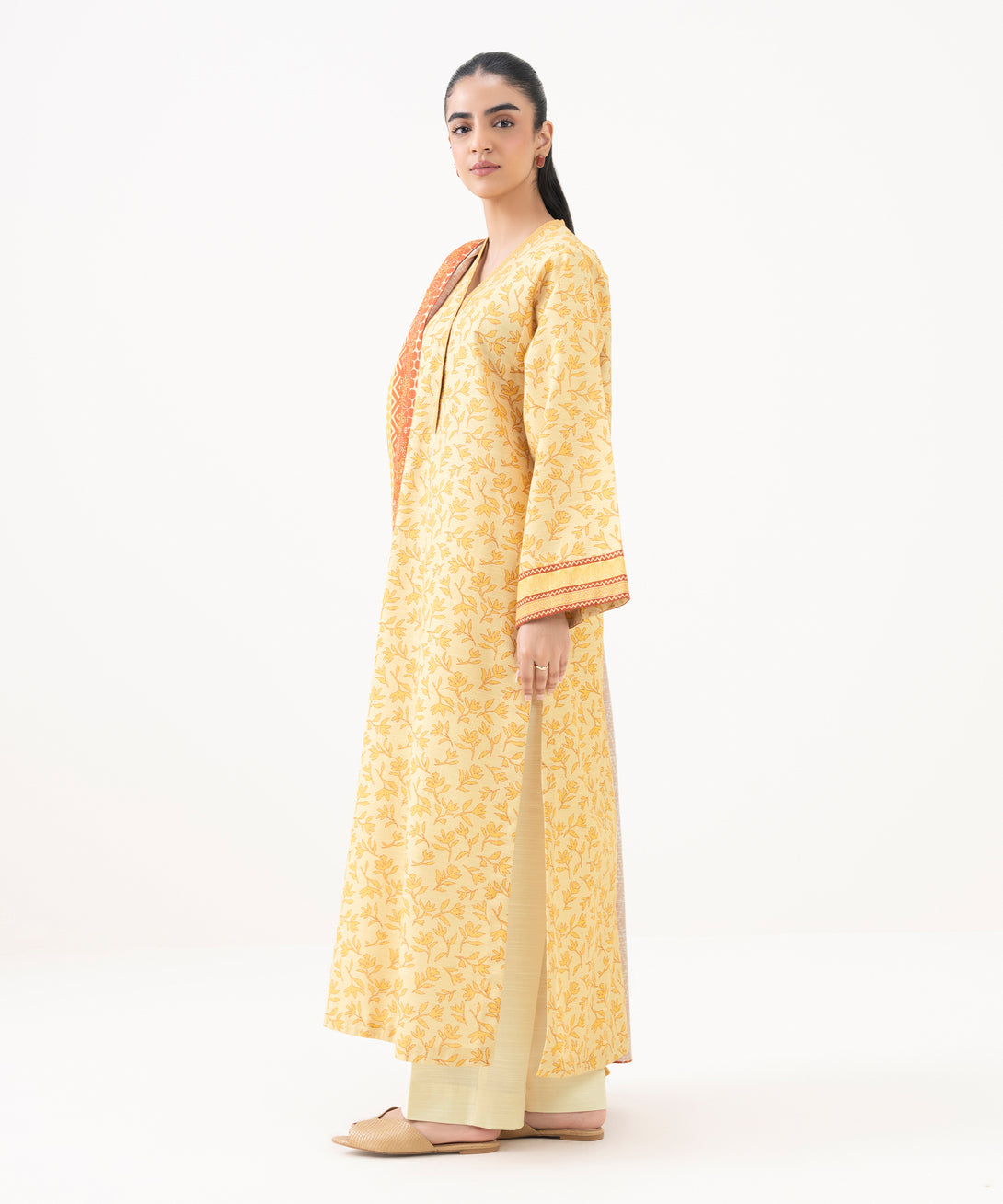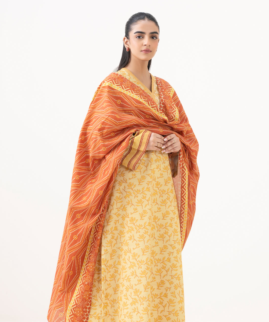 Make a statement with our two-piece printed ensemble featuring a lime yellow khaddar shirt paired with a light khaddar dupatta.