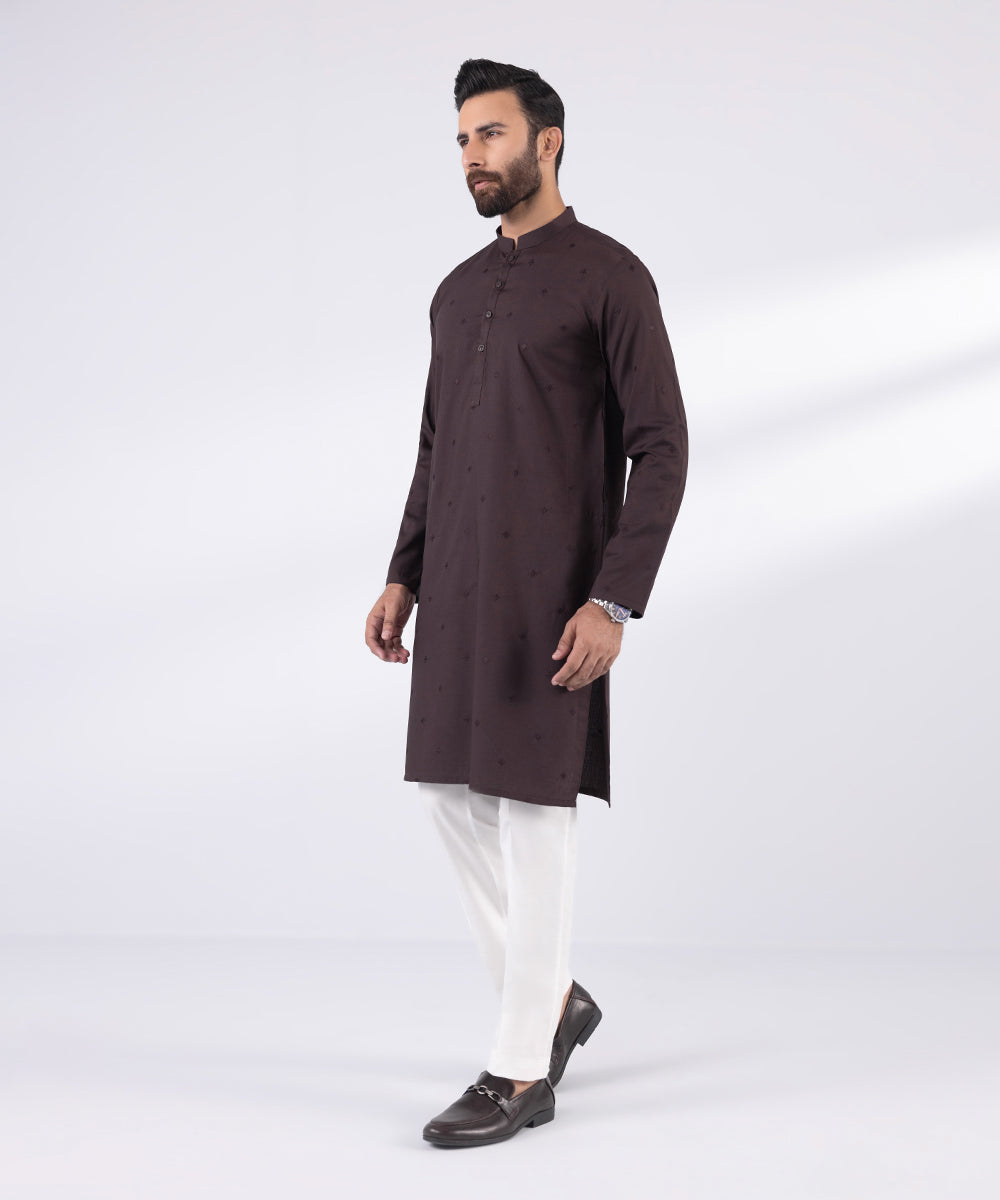 Make a dapper statement with our maroon embroidered dobby kurta.