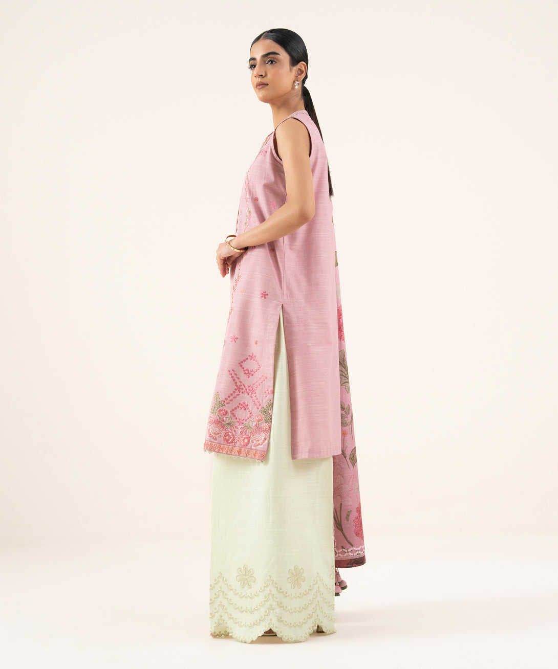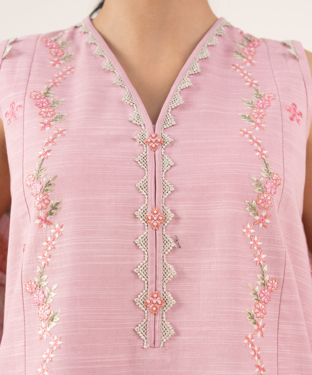 Make a statement with our two-piece embroidered ensemble featuring a khaddar shirt and dupatta.