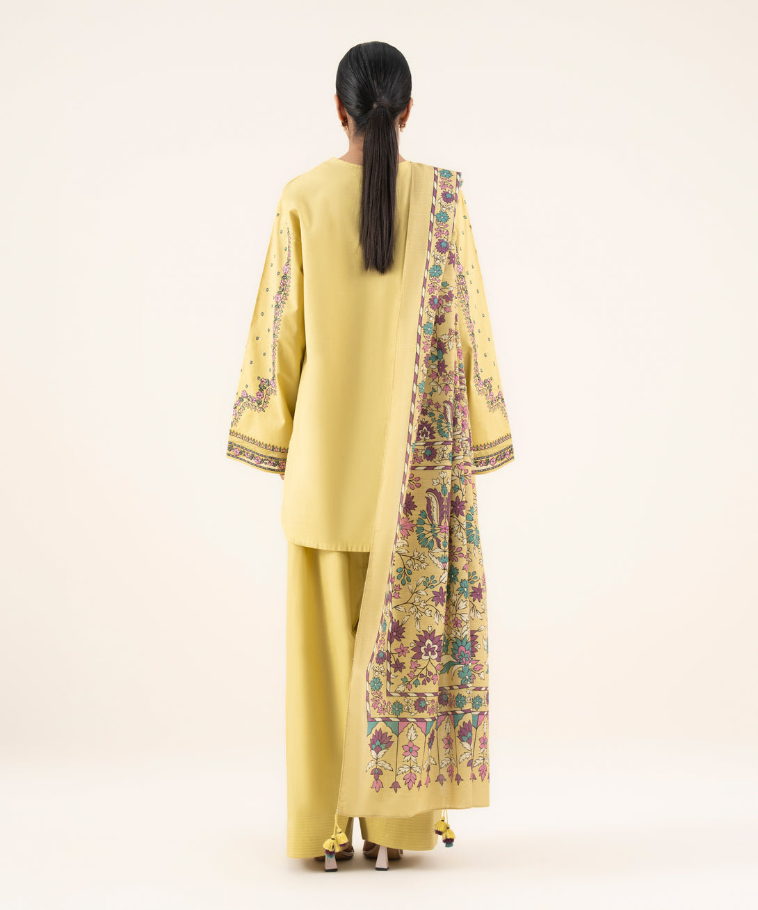 Make a statement with our two-piece embroidered ensemble featuring a textured cotton shirt paired with a blended dupatta.