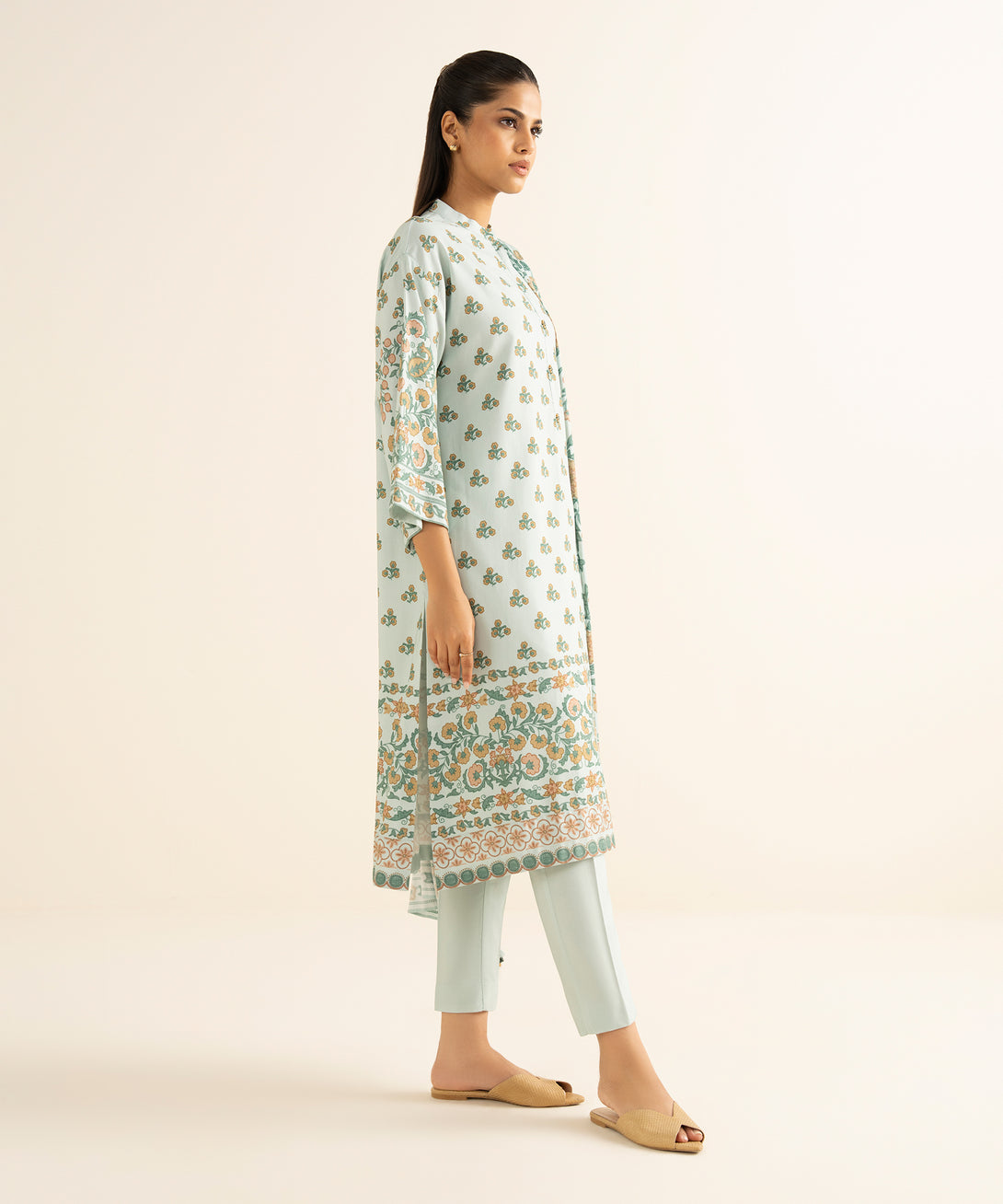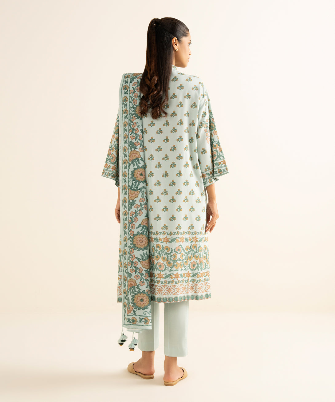 Make a statement with our three-piece printed ensemble featuring a linen shirt and trousers paired with a light linen dupatta.