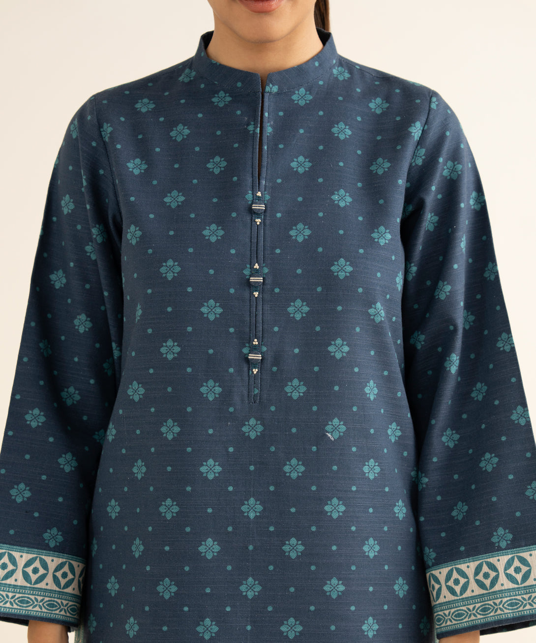 Elevate your style with our two-piece printed blue ensemble featuring a cotton shirt and dupatta.