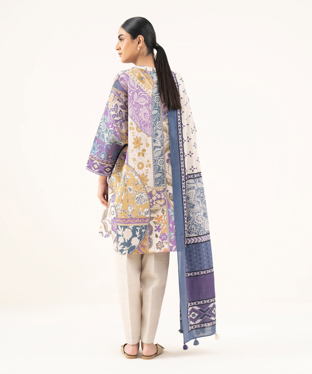 Make a statement with our two-piece printed multicoloured ensemble featuring a cotton shirt and dupatta.