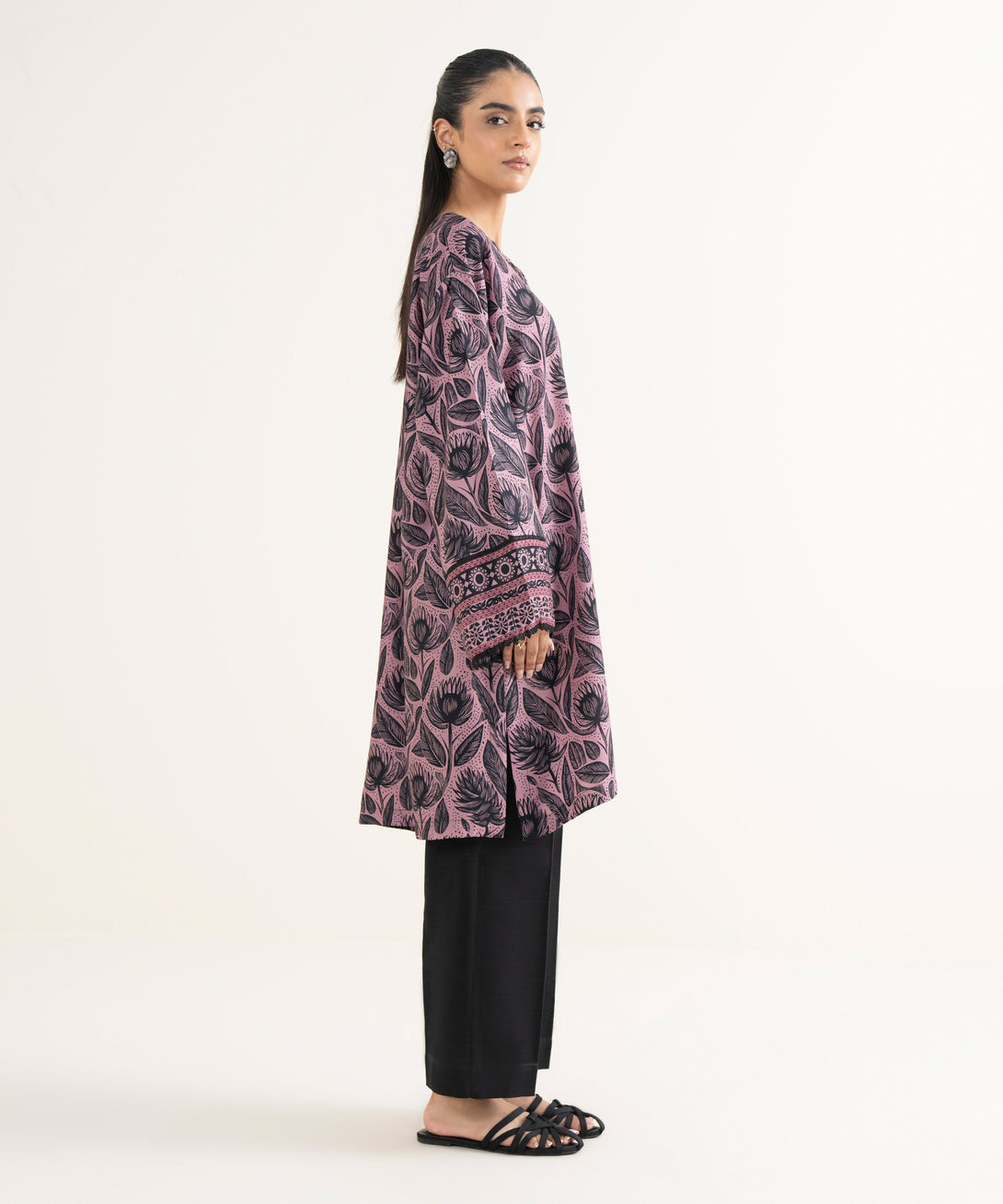 Printed Front Panel, Printed Back Panel, Round With Slit Neckline, Full Sleeves, Short Length