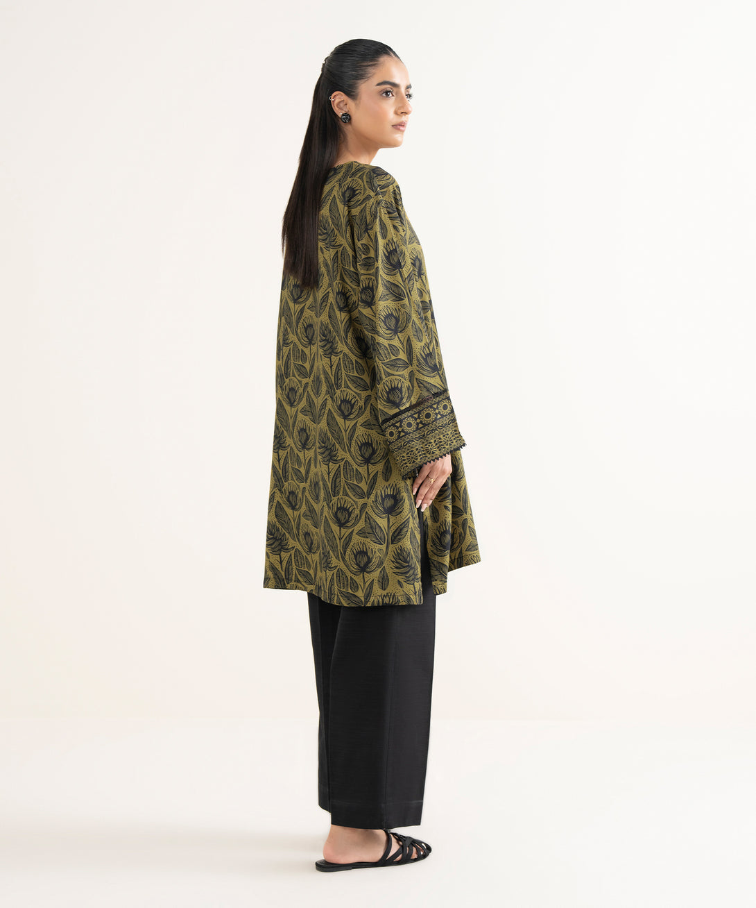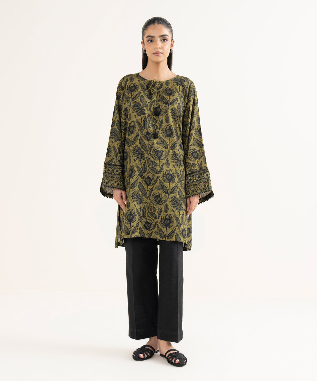 Printed Front Panel, Printed Back Panel, Round With Slit Neckline, Full Sleeves, Short Length