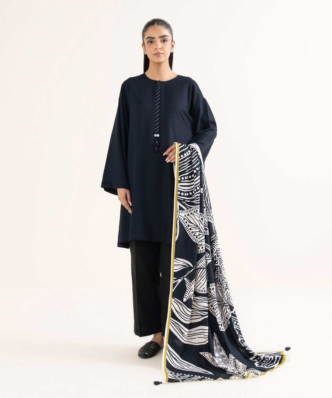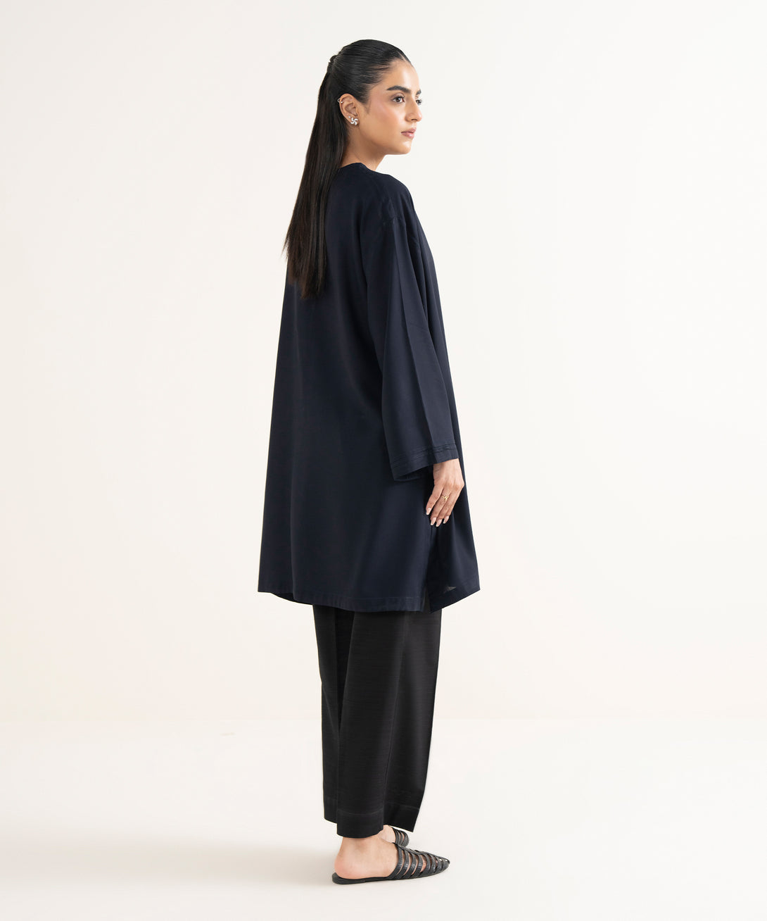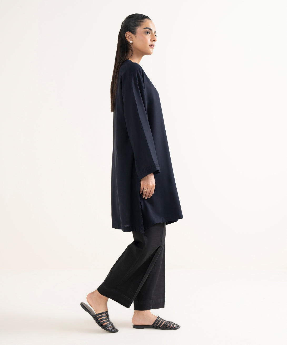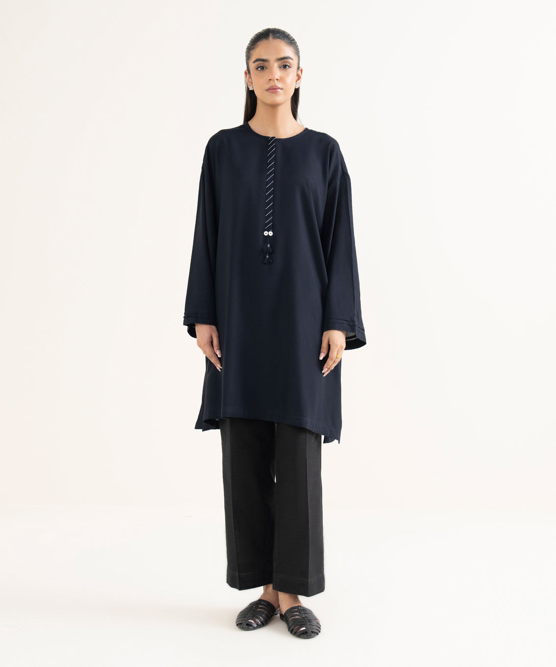 Dyed With Top Stitch Front Panel, Dyed Back Panel, Round With Placket Neckline, Full Sleeves, Short Length