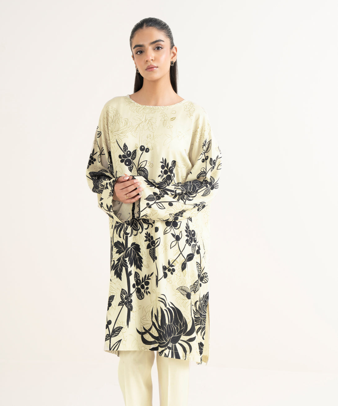 Printed Front Panel, Printed Back Panel, Round Neckline, Full Sleeves, Mid Length