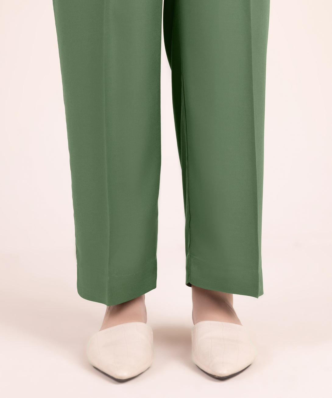 Step out in style in our dyed green bedford straight pants.