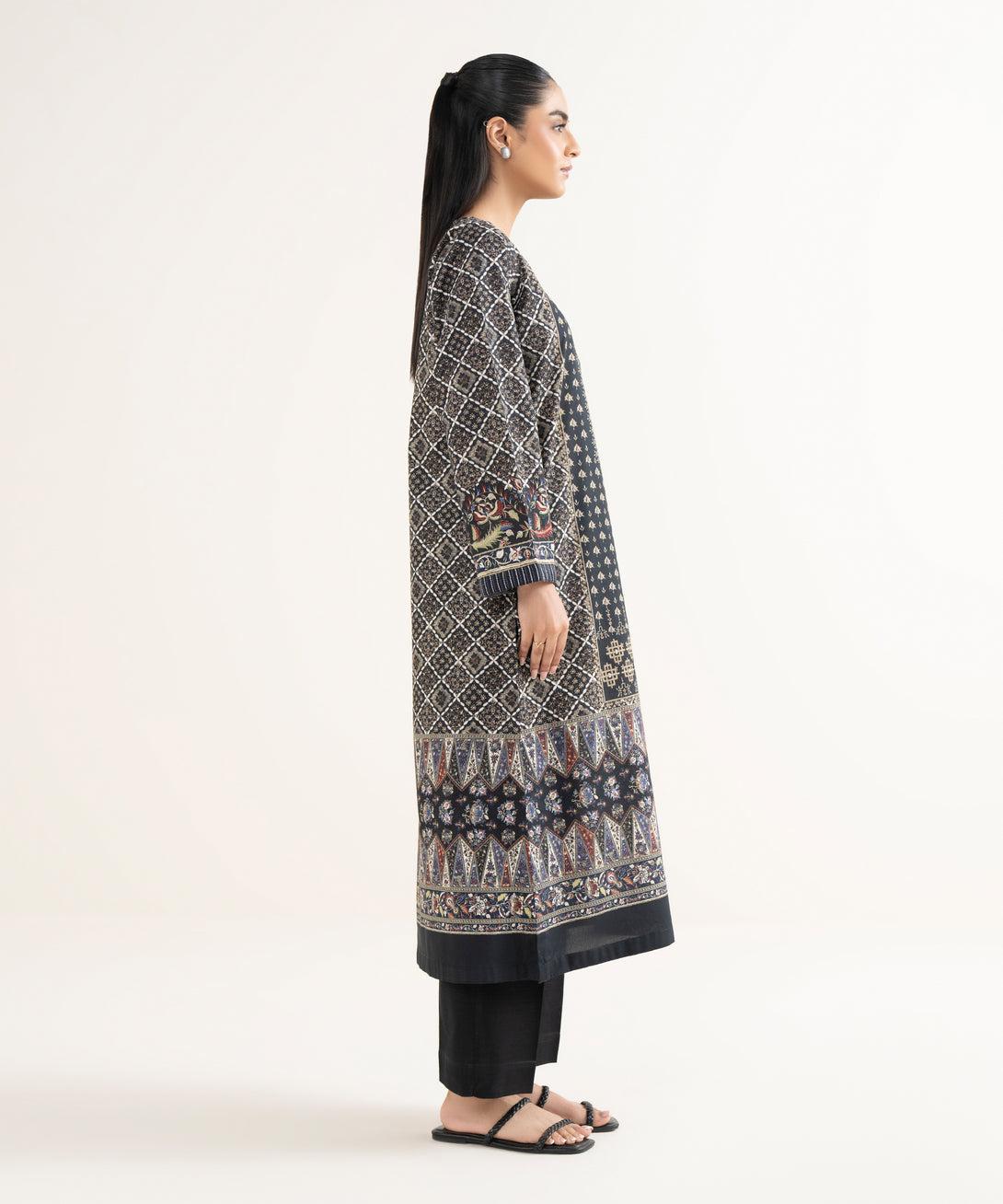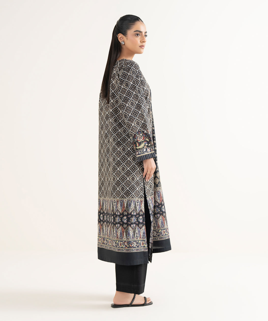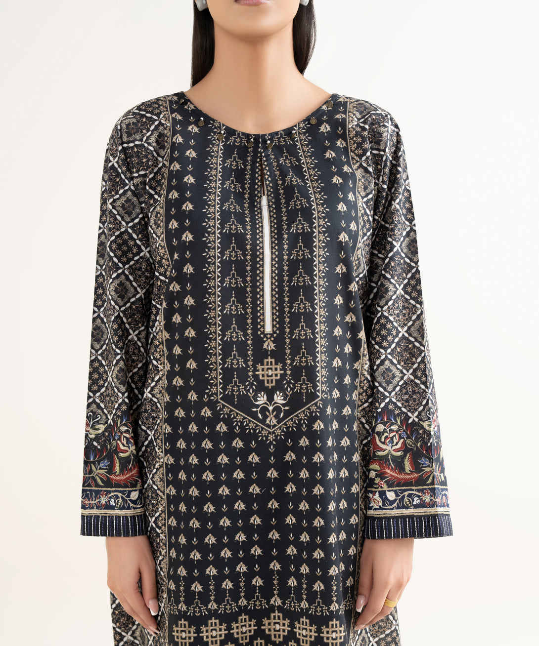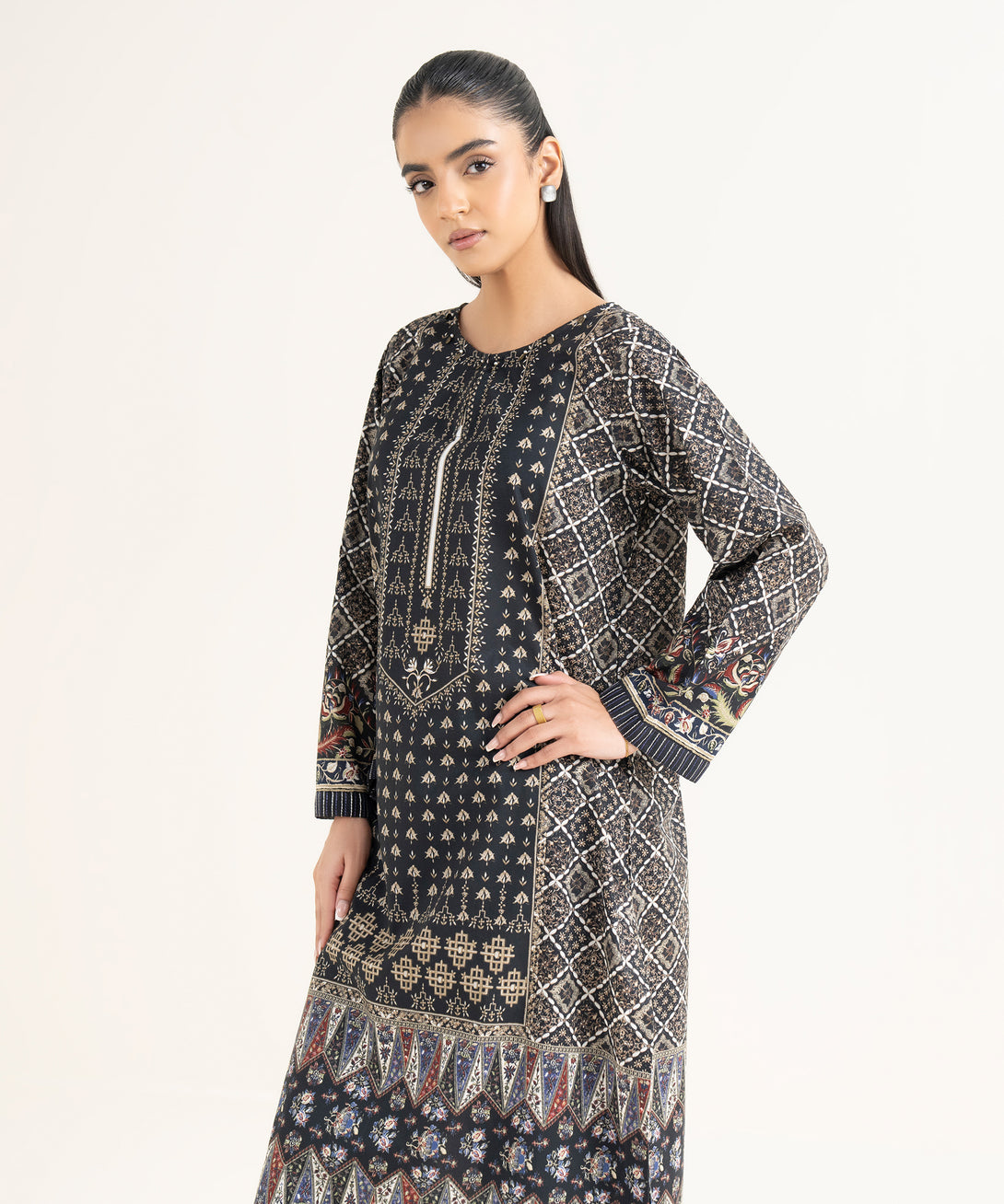 Printed Front Panel, Printed Back Panel, Round With Slit Neckline, Full Sleeves, Long Length