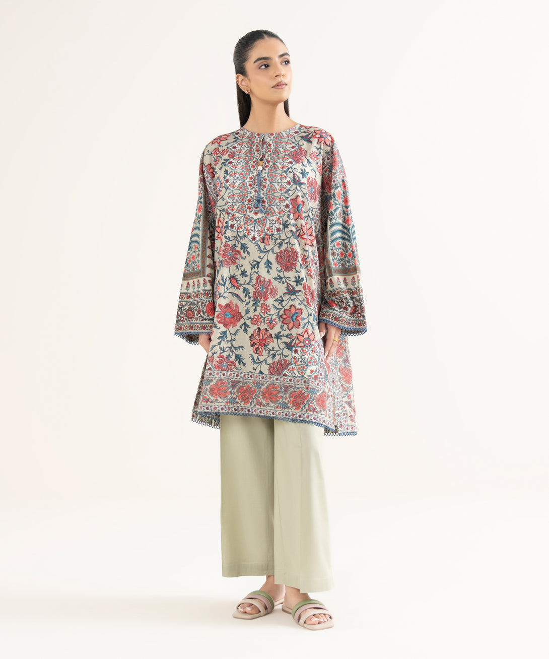 Printed Front Panel, Printed Back Panel, Round With Slit Neckline, Full Sleeves, Short Length