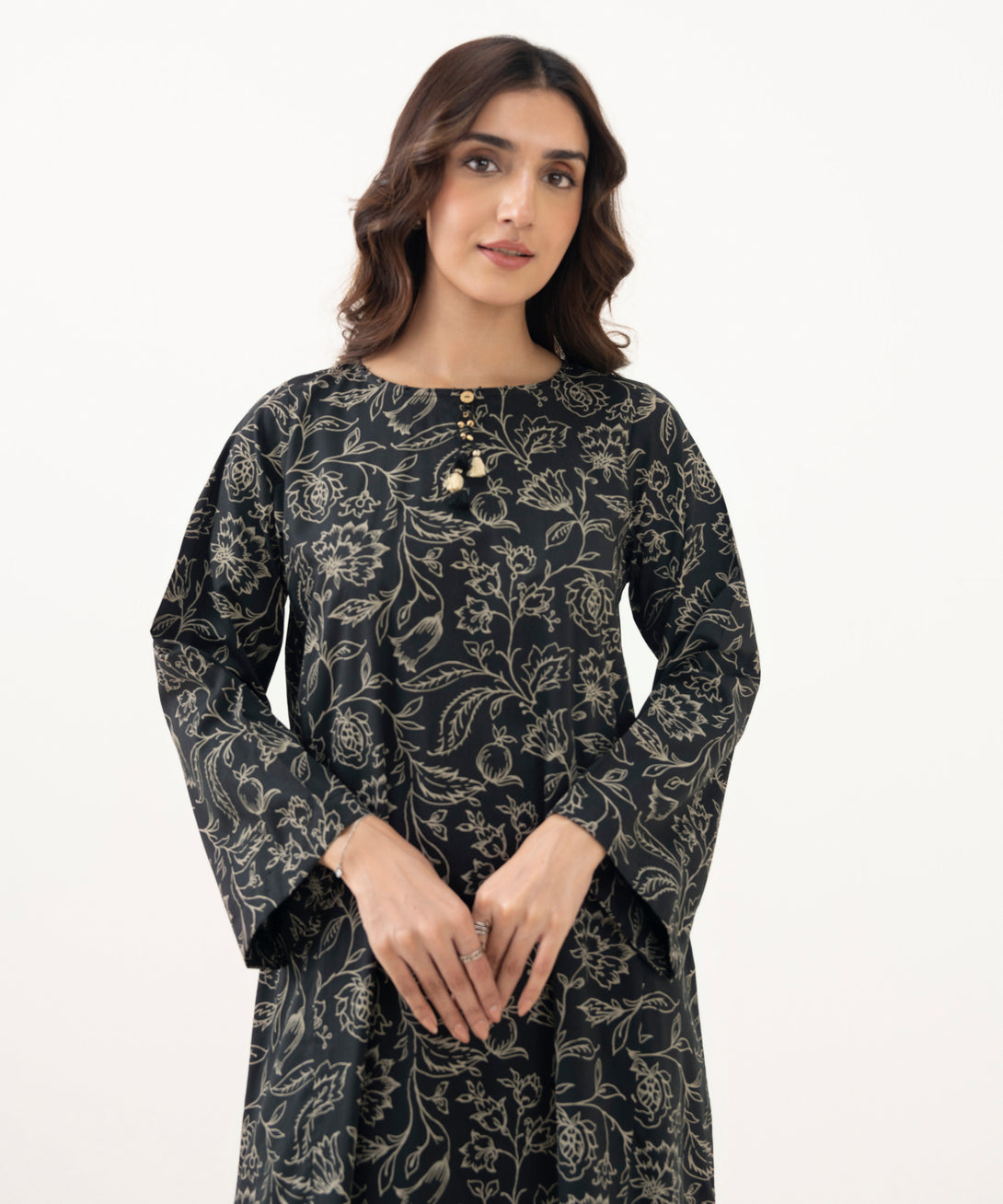 Printed Front Panel, Printed Back Panel, Round Neckline, Full Sleeves, Long Length