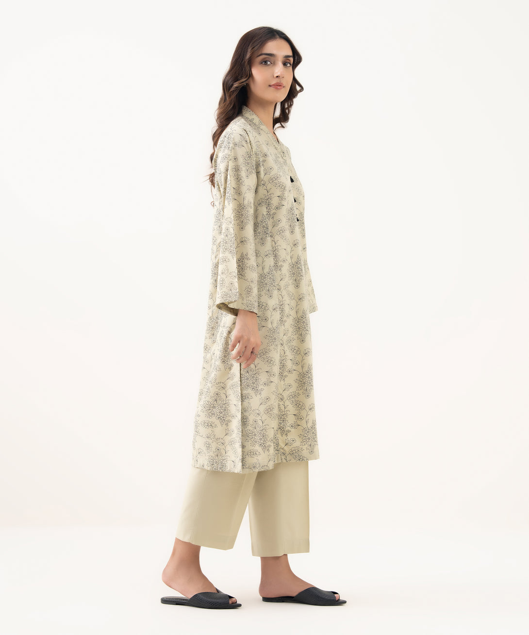 Printed Front Panel, Printed Back Panel, V Neckline, Full Sleeves, Long Length