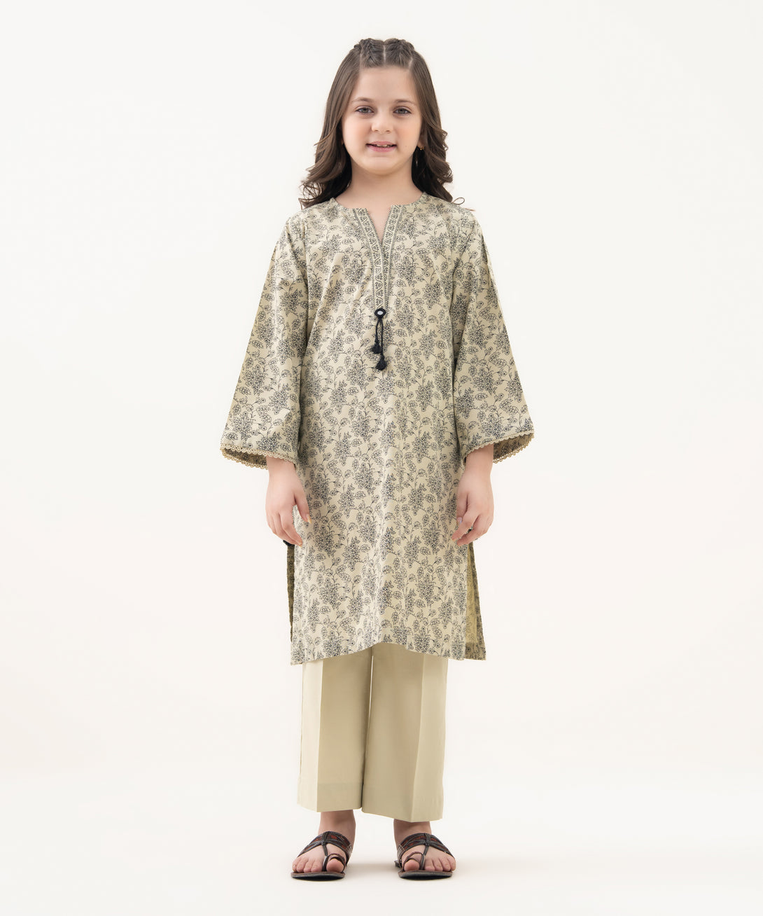 Dress your little one in our printed ash grey cotton viscose straight shirt and shalwar.