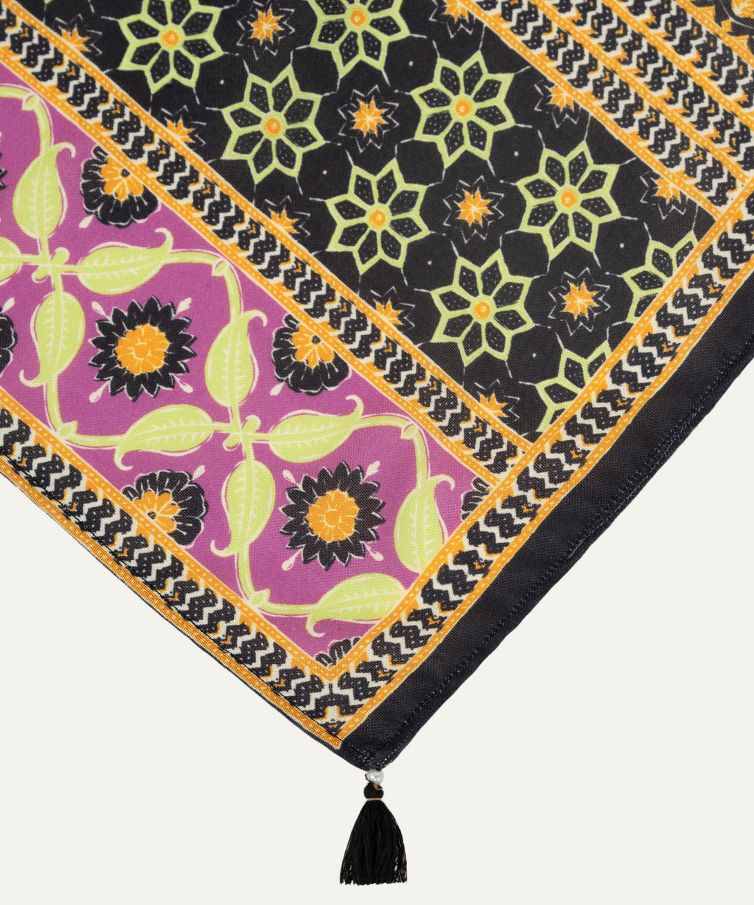 Drape yourself this winter season in our printed pink blended shawl featuring tassels.
