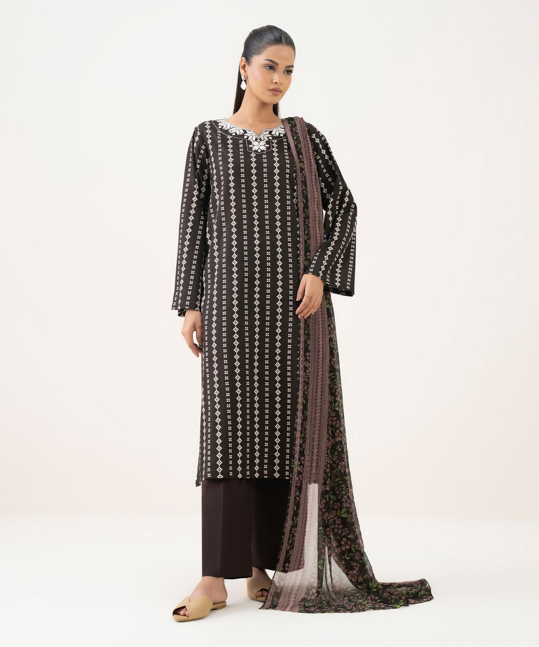 Upgrade your wardrobe with our embroidered black lawn viscose straight shirt featuring a round neckline and slit.