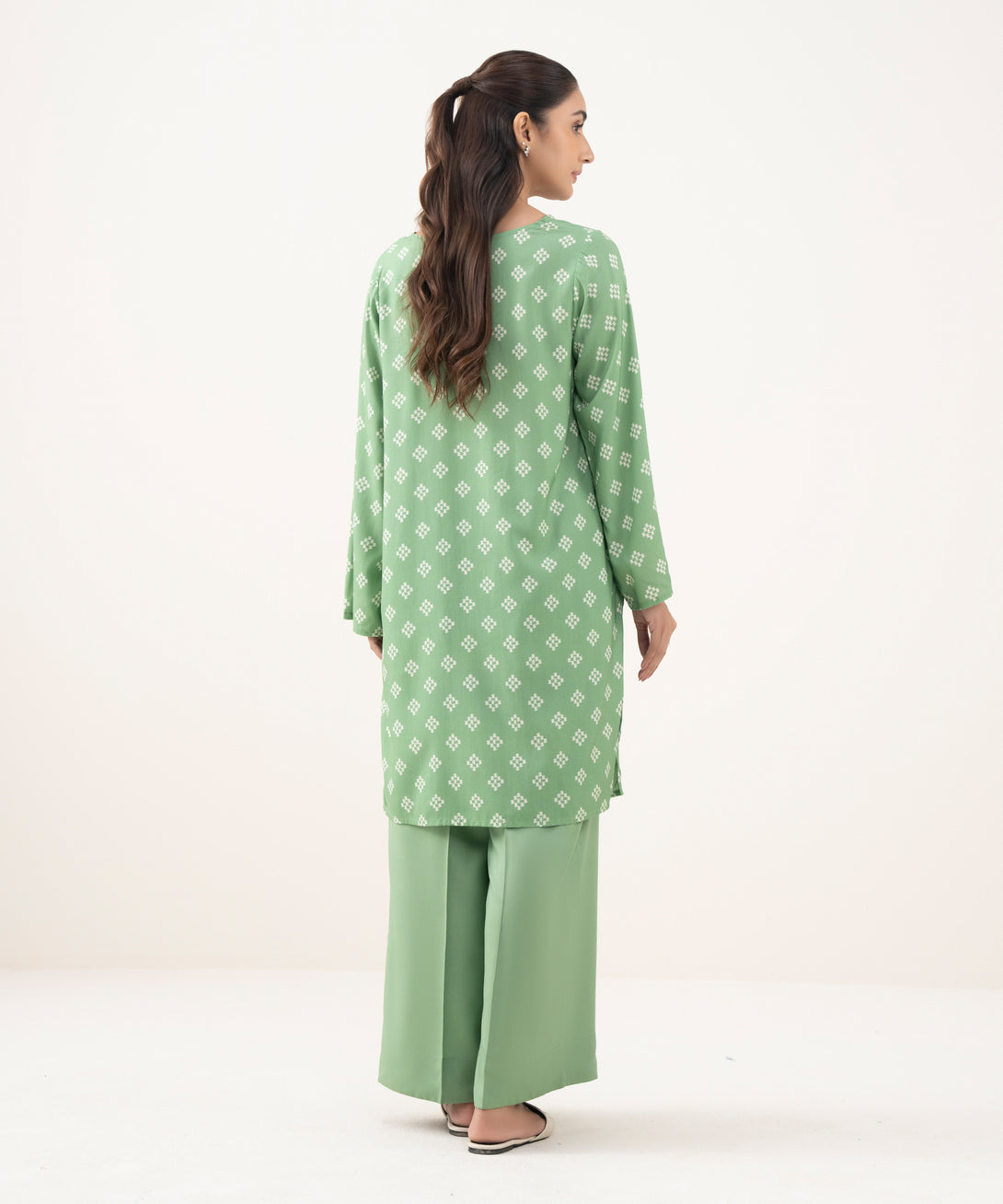 Printed Front Panel, Printed Back Panel, Round With Slit Neckline, Full Sleeves, Mid Length
