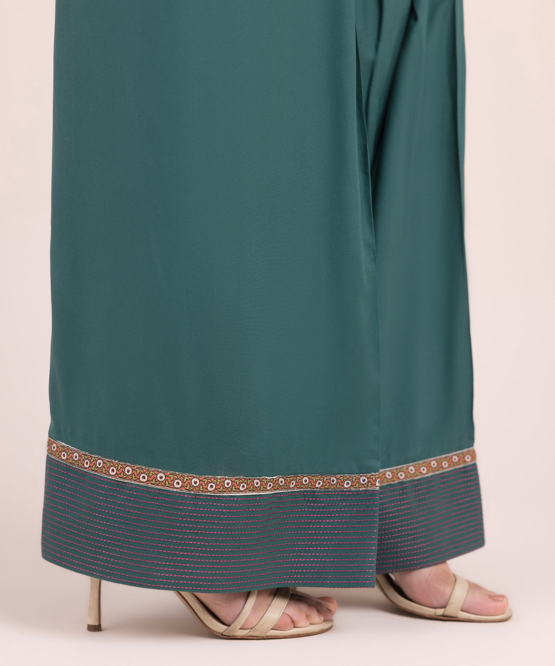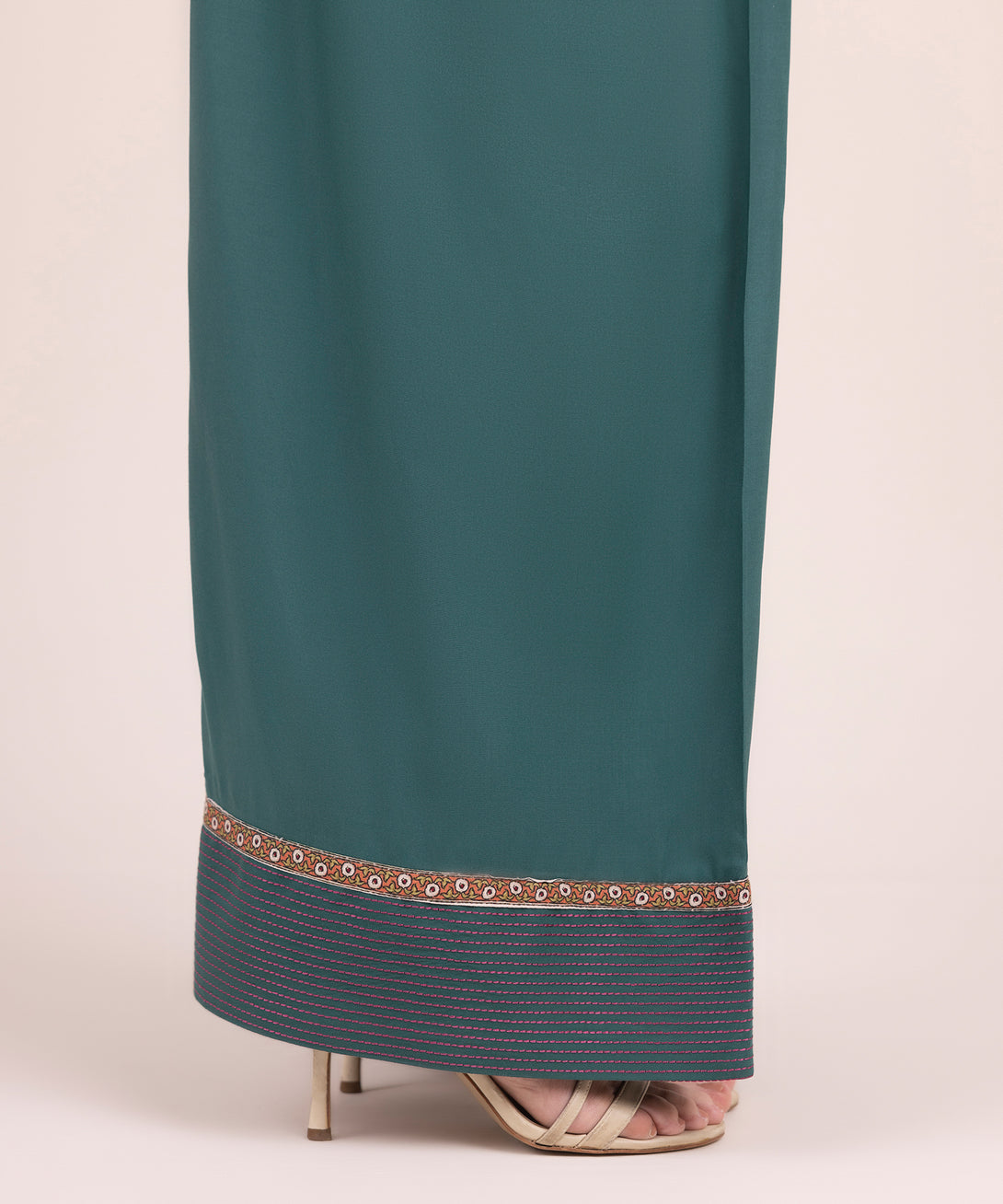 Make a statement in our embroidered green textured viscose farshi shalwar.