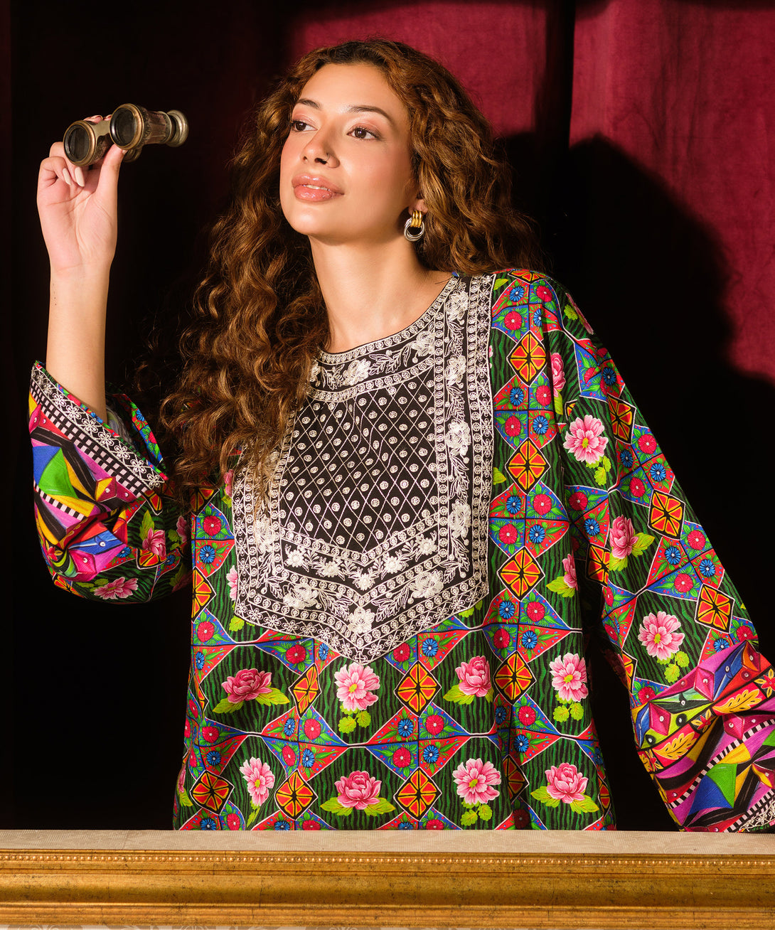 Revamp your wardrobe with our embroidered green light khaddar boxy shirt featuring a round neckline.