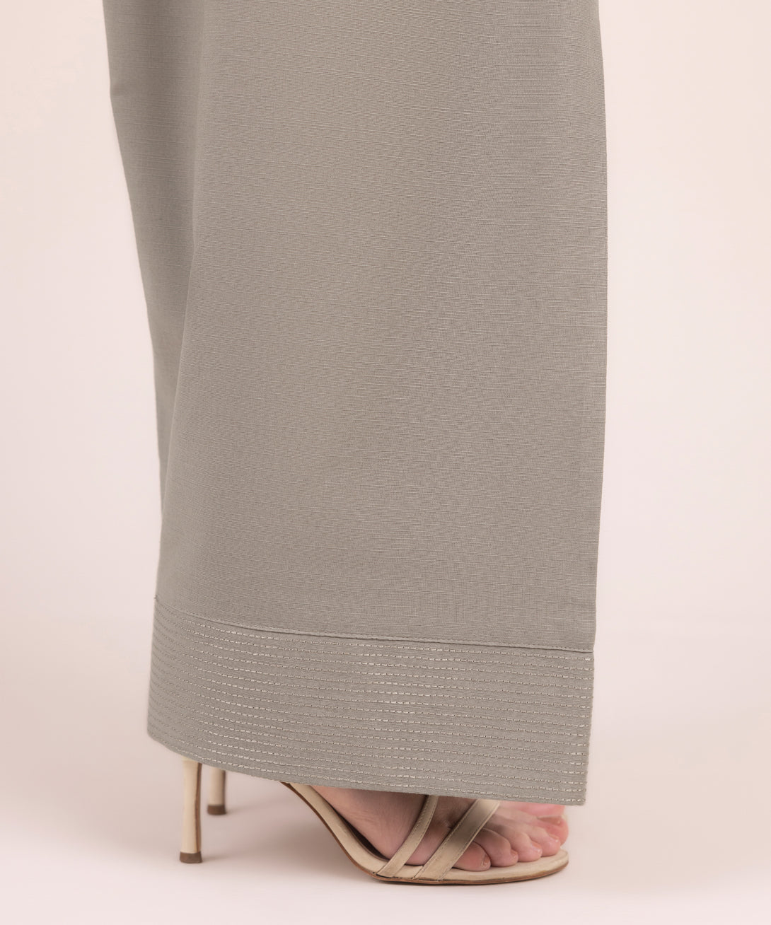 Make a statement in our embroidered grey khaddar farshi shalwar.