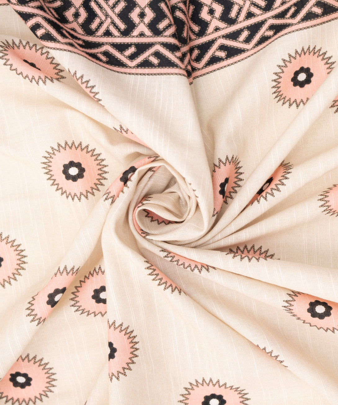 Drape yourself in our printed off white light khaddar dupatta featuring tassels.