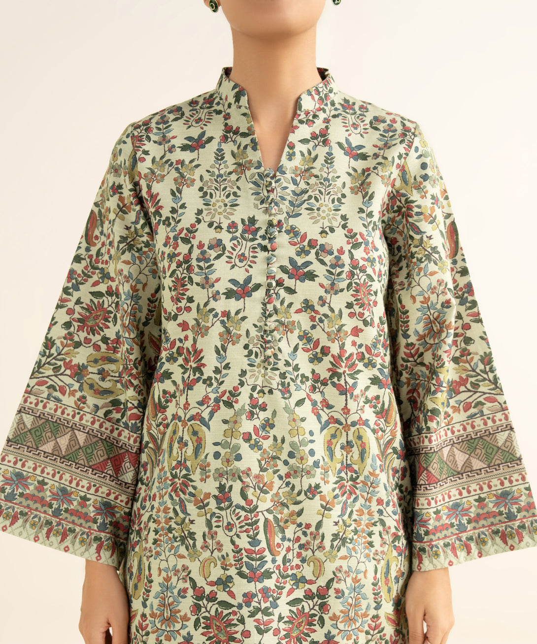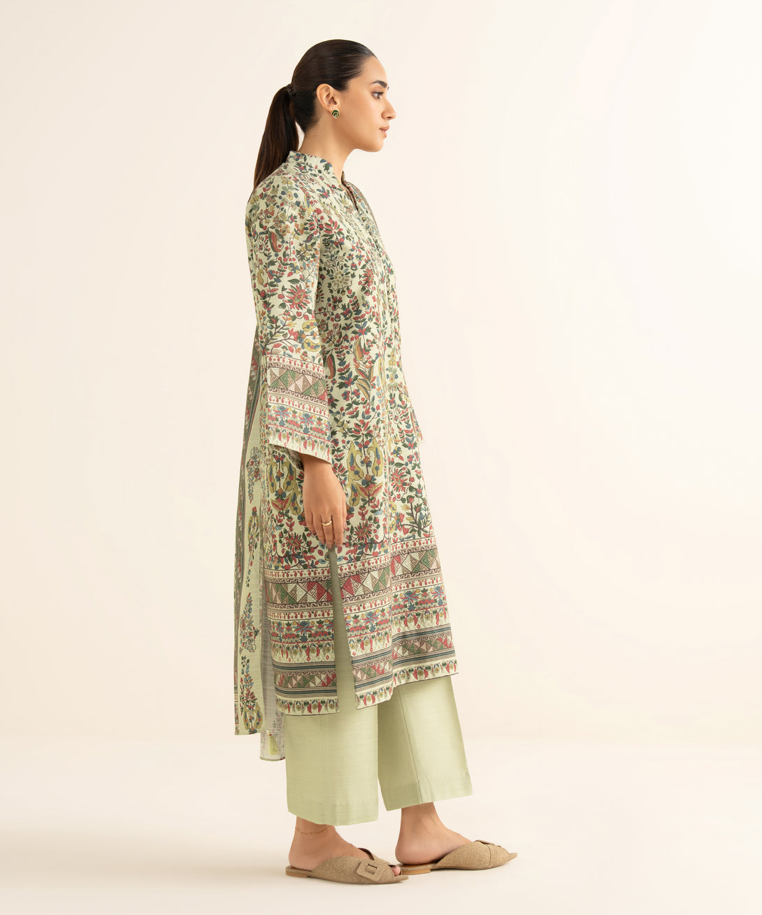Make a statement with our three-piece printed ensemble featuring a cotton shirt and trousers paired with a voile dupatta.