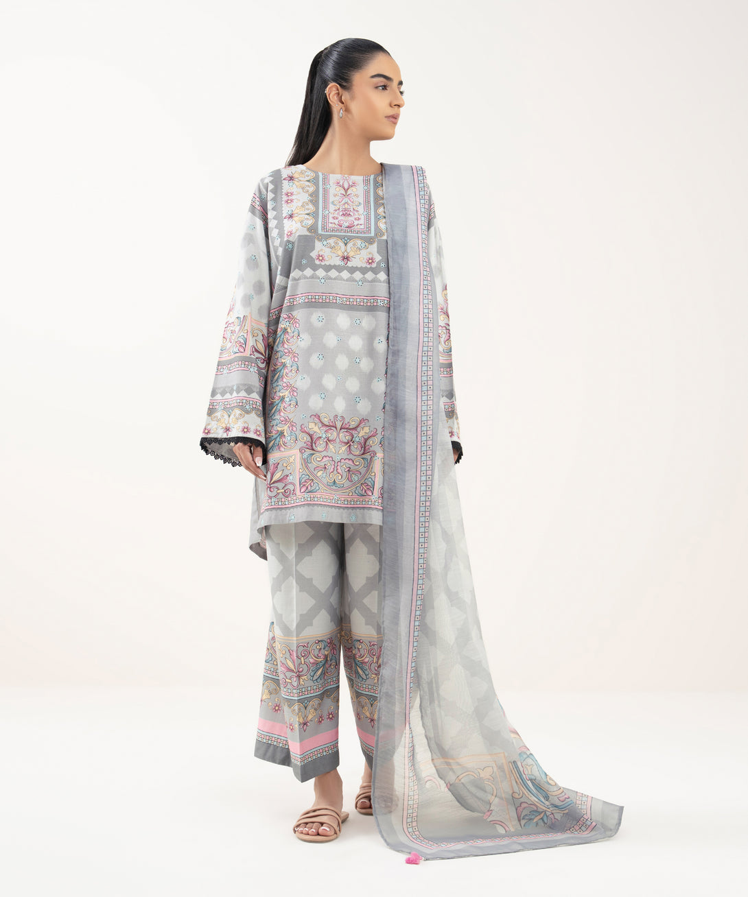 Printed With Embroidered And Lace Finish Front Panel, Printed Back Panel, Round Neckline, Full Sleeves, Short Length