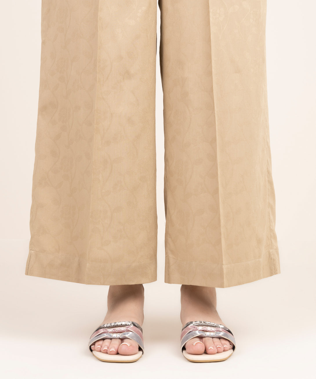 Step out in style in our dyed beige arabic self jacquard culottes.