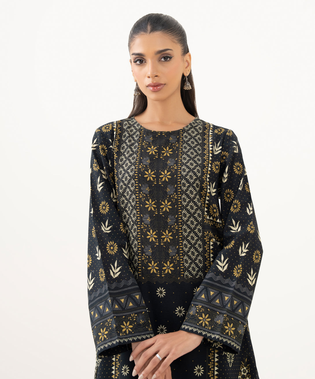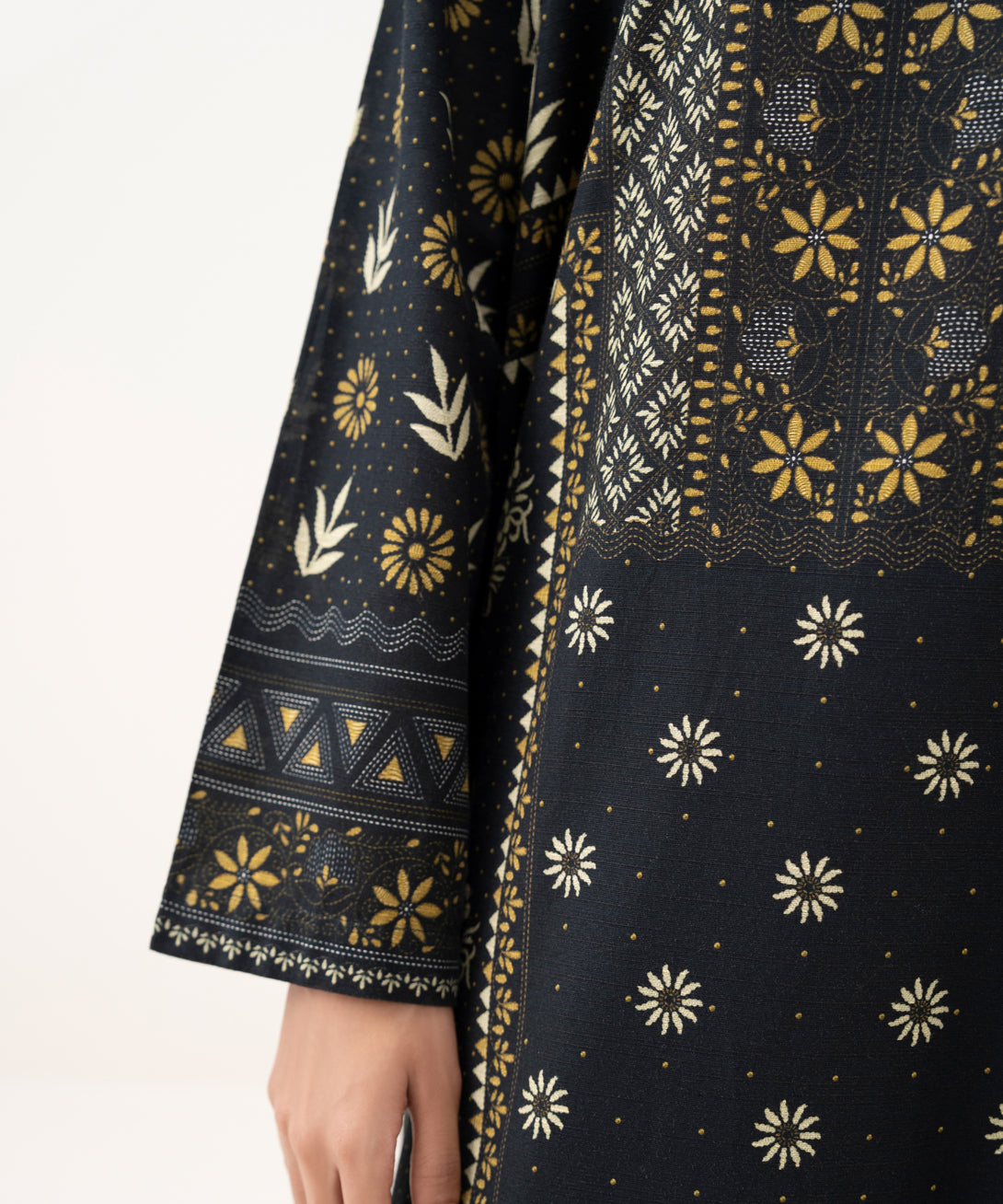 Printed Front Panel, Printed Back Panel, Round Neckline, Full Sleeves, Long Length