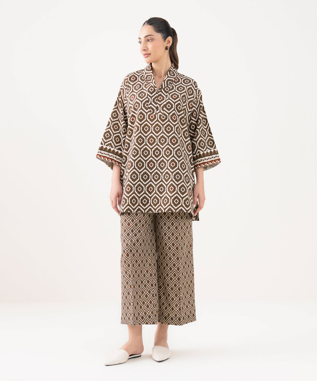 Printed Front Panel, Printed Back Panel, Shawl Neckline, Full Sleeves, Short Length