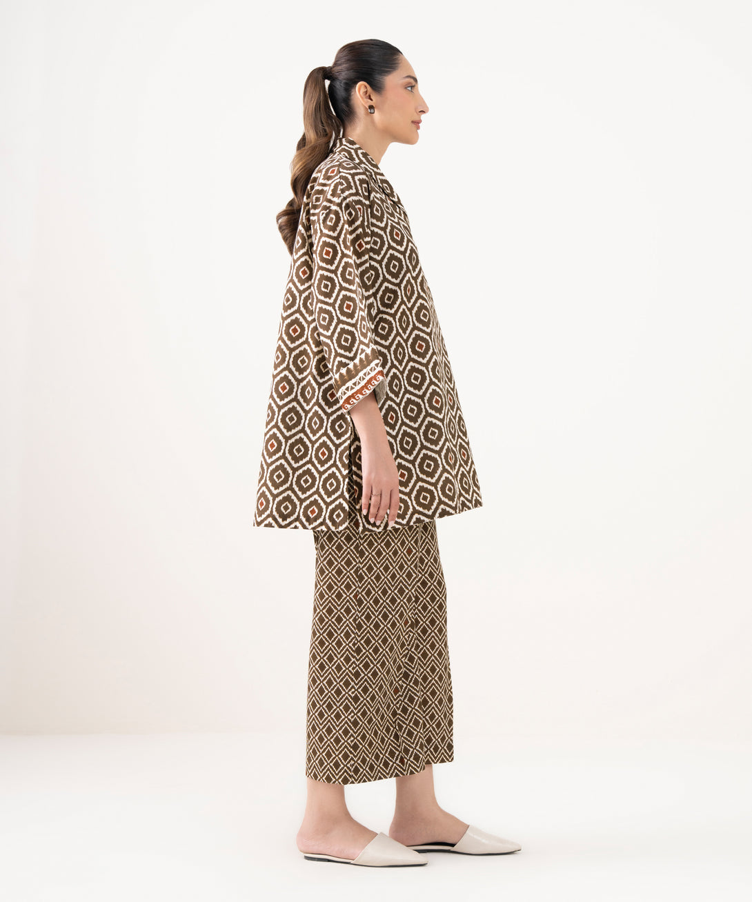 Upgrade your style in our printed brown cotton straight shirt featuring a v-neckline.
