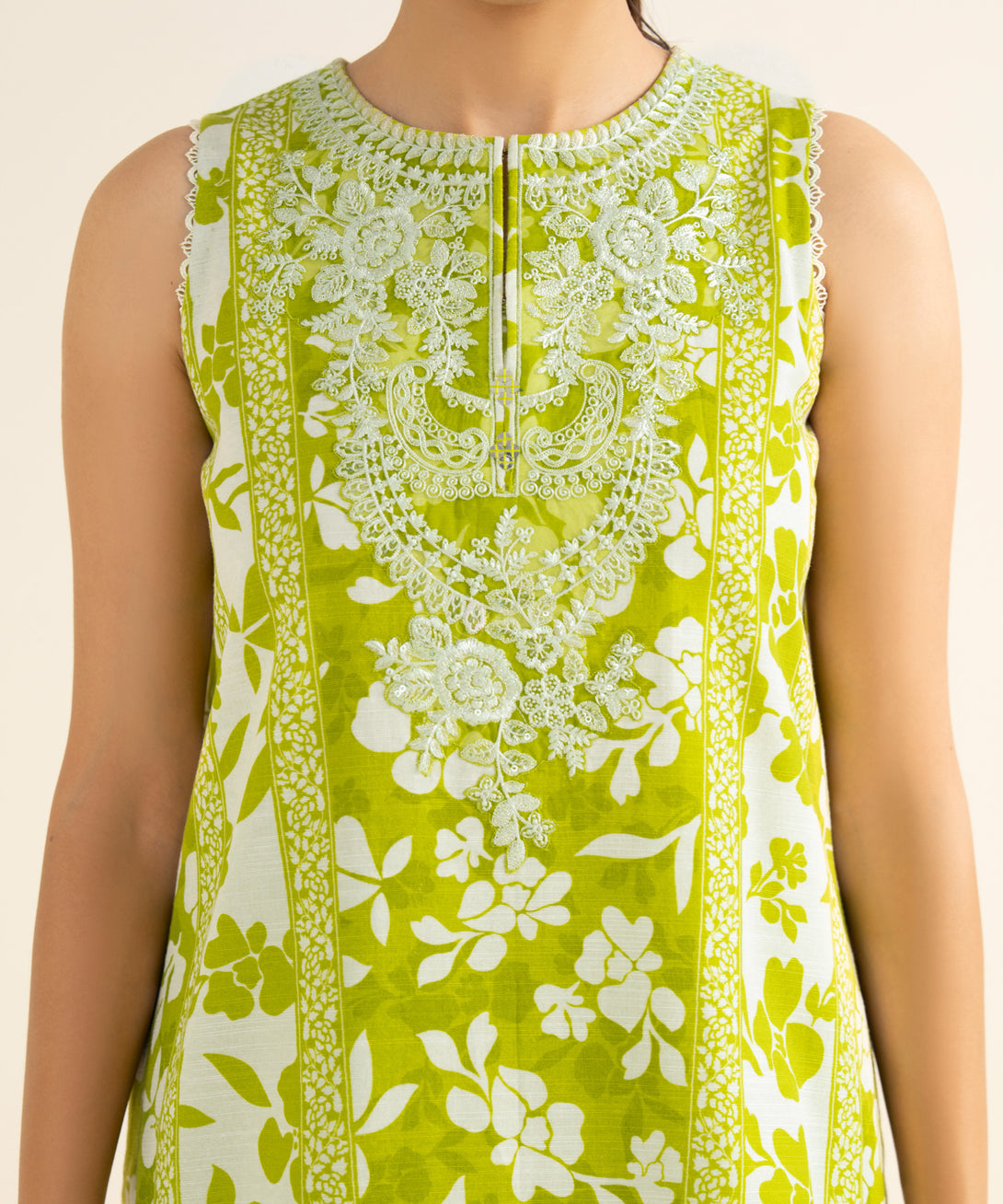 Embroidered Neckline & Hem Border 2pc