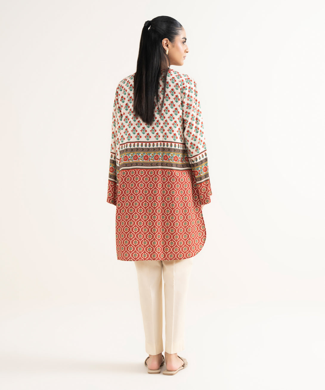 Printed Front Panel, Printed Back Panel, Band With Placket Neckline, Full Sleeves, Short Length