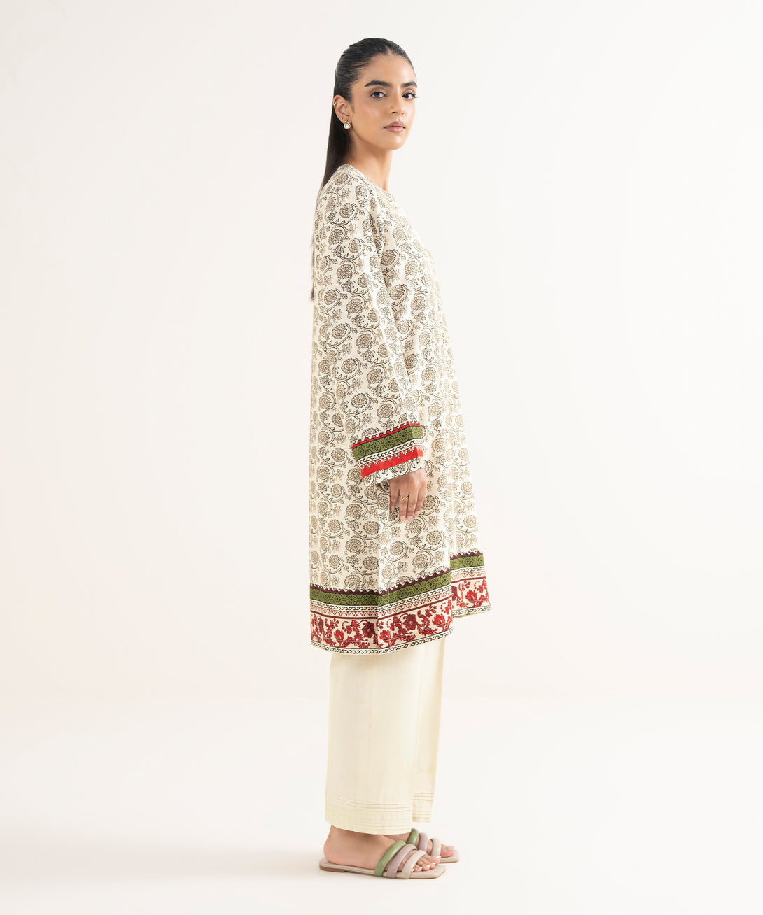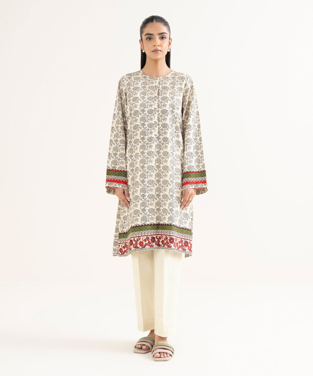 Printed Front Panel, Printed Back Panel, Round With Placket Neckline, Full Sleeves, Mid Length