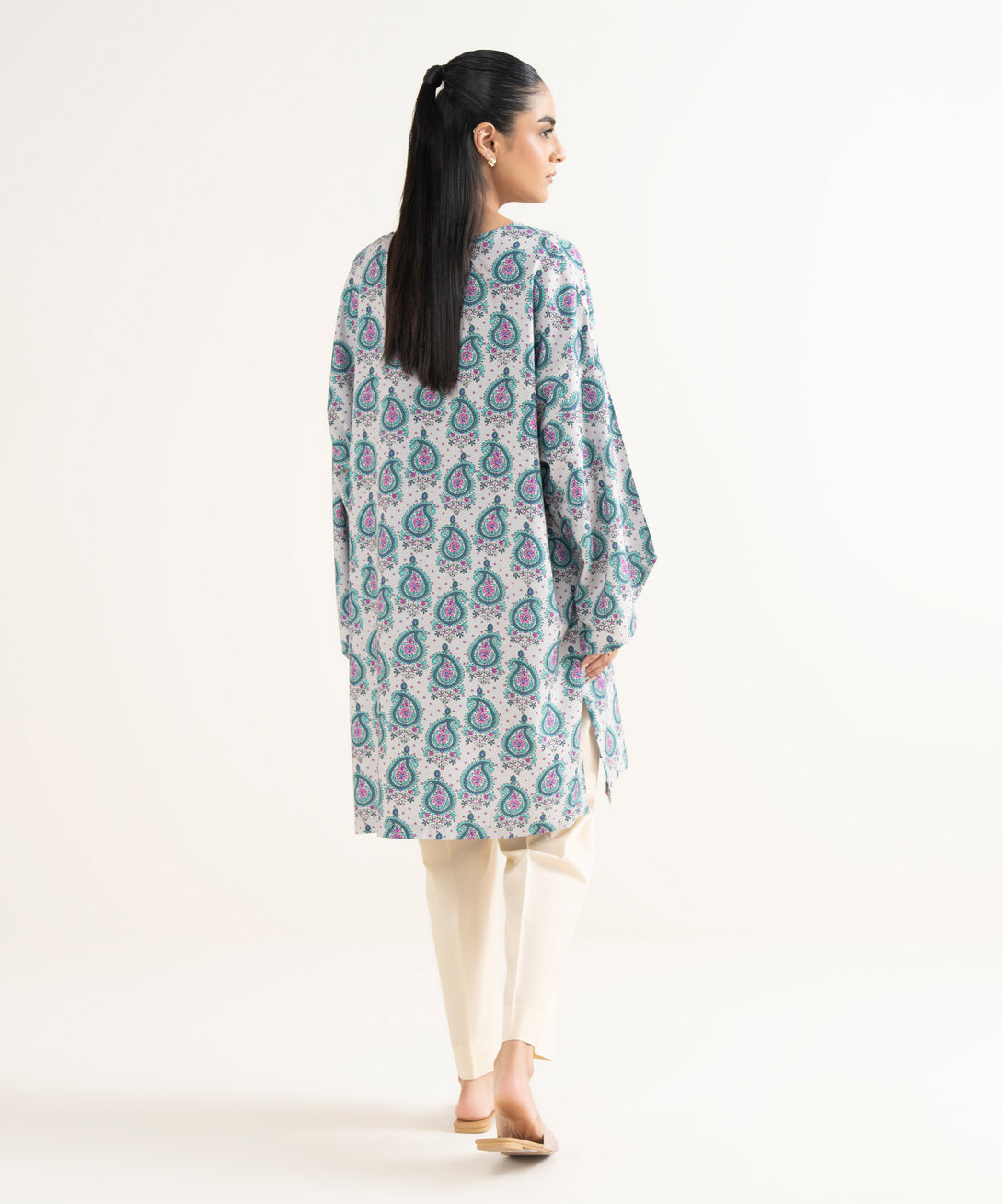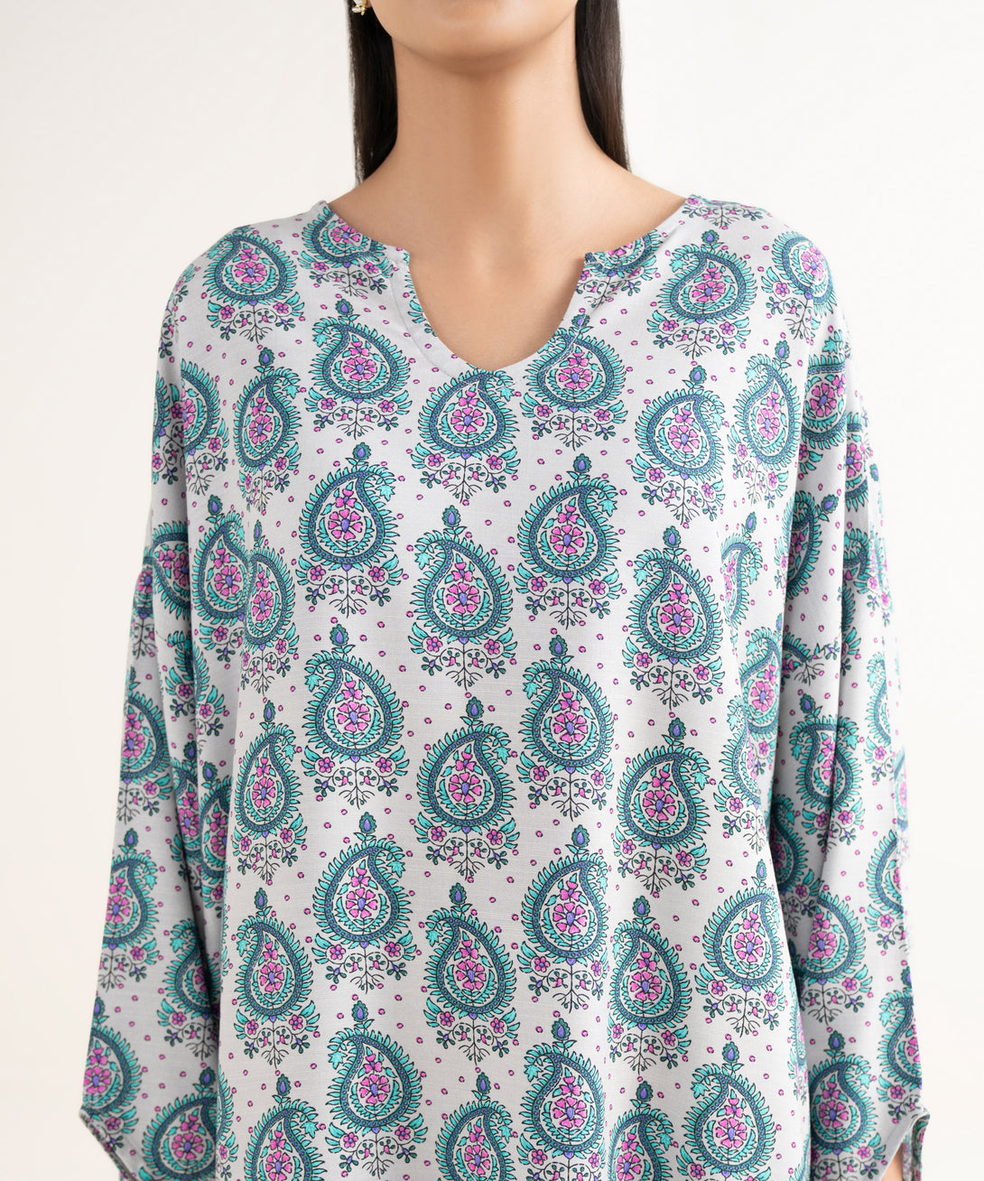 Printed Front Panel, Printed Back Panel, Round With Slit Neckline, Full Sleeves, Short Length