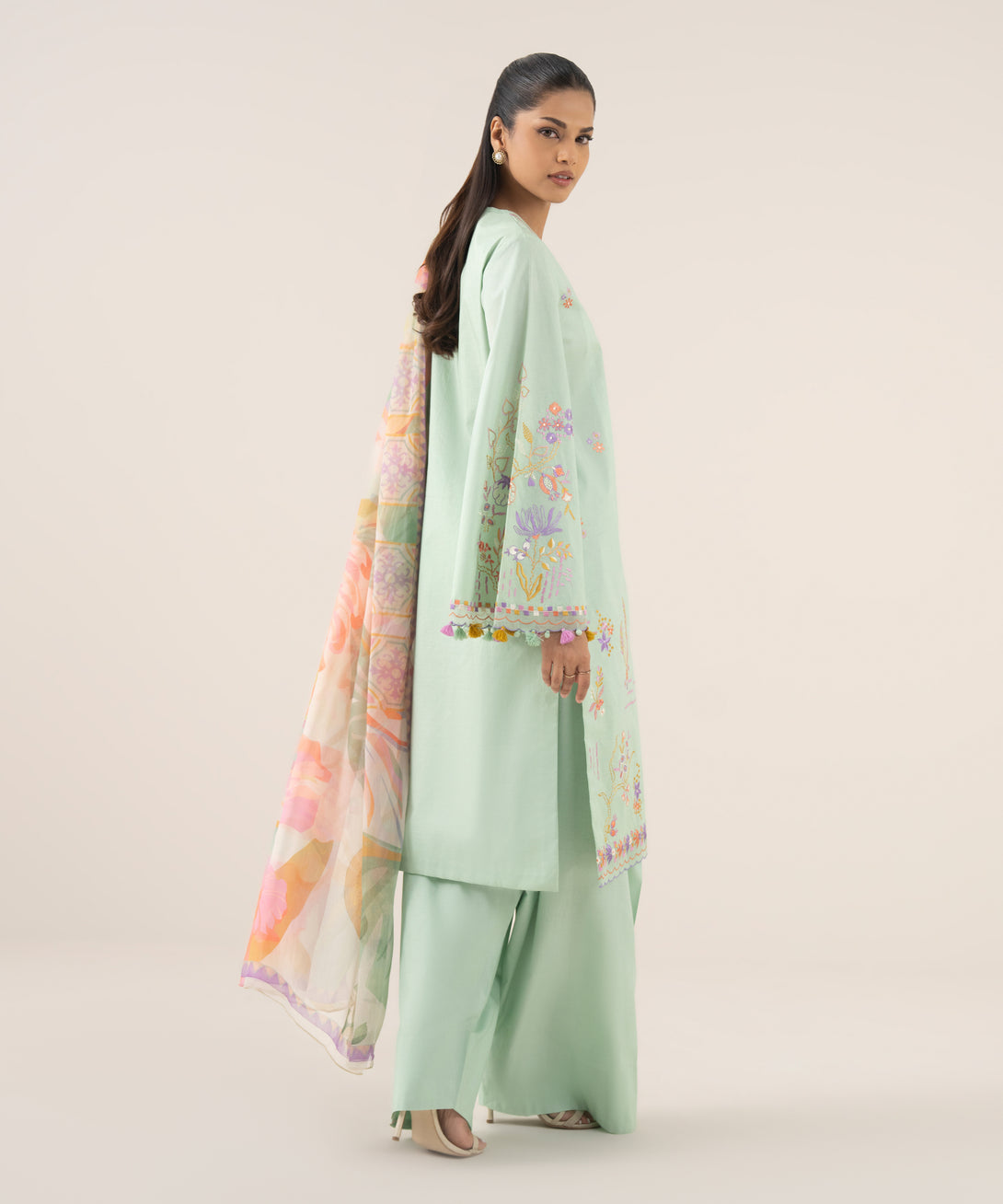 Embroidered Hem & Sleeves Border 3pc